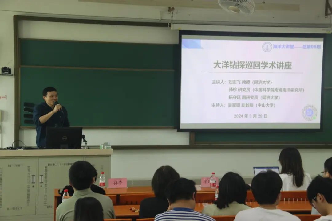 3月29日下午,“海洋大讲堂”第98期——“大洋钻探巡回学术讲座”在中山大学珠海校区教学楼C203顺利举行。同济大学海洋与地球科学学院刘志飞教授、中国科学院南海海洋研究所孙珍研究员和中国IODP办公室拓守廷副研究员担任本期主讲嘉宾,围绕“大洋钻探”主题进行报告。讲座由太阳成集团tyc9728吴家望副教授主持,珠海校区近170余位师生参加讲座。