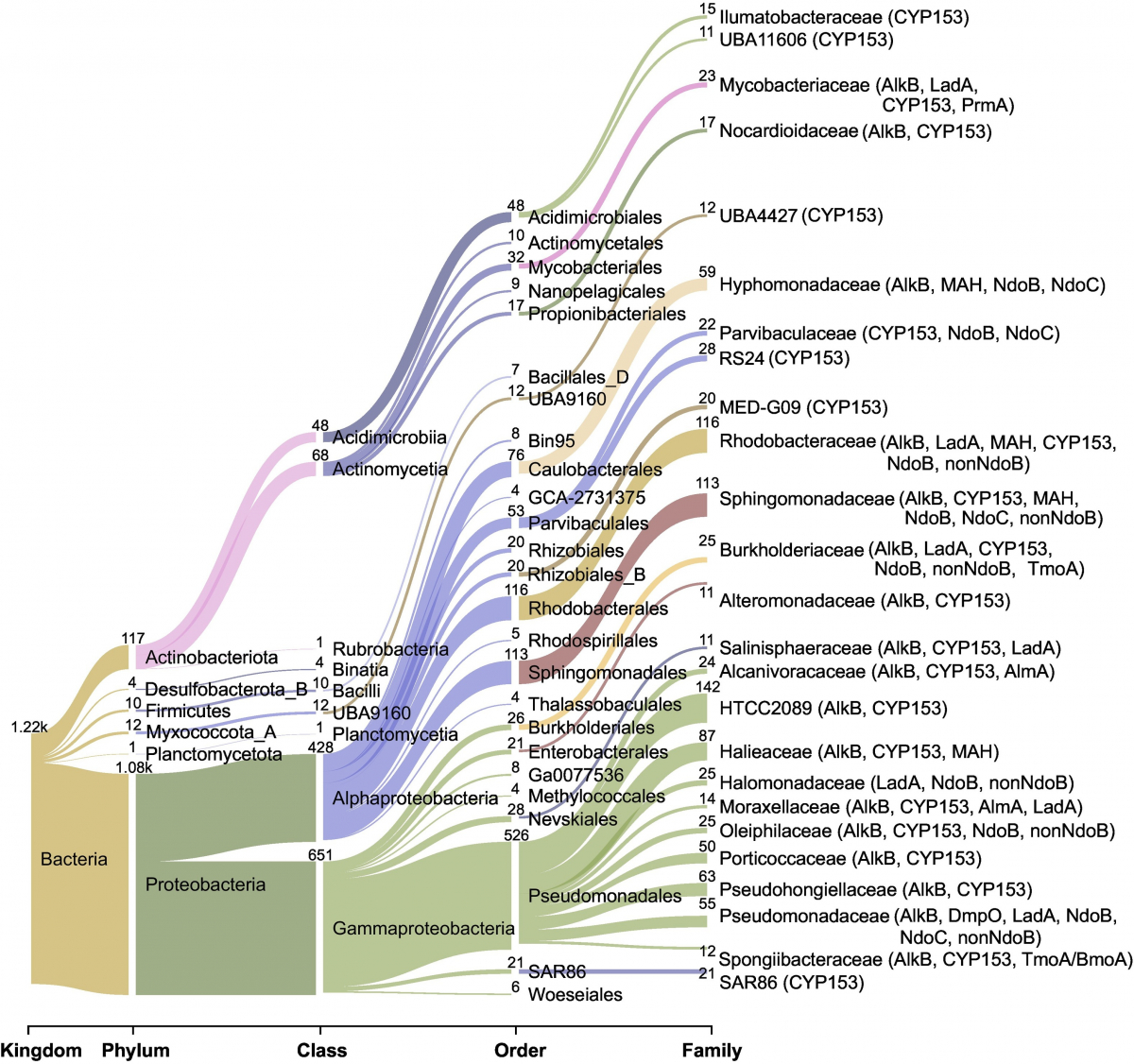 图1 全球海洋中烃降解微生物的物种多样性