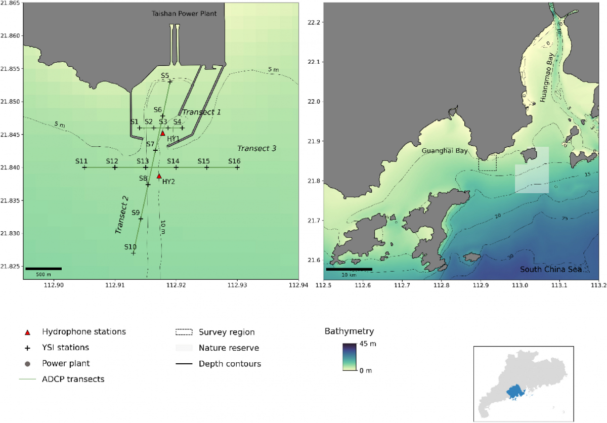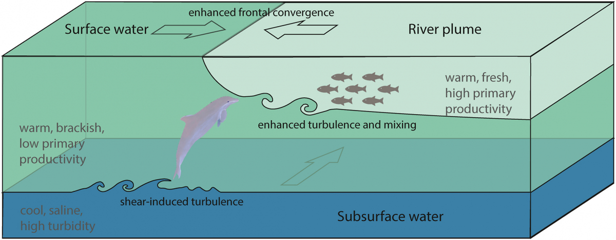 海洋哺乳动物往往聚集在特定的“热点”(hotspot)区域觅食,这被认为与中小尺度海洋动力过程驱动的食饵资源异质性分布有关。然而,目前对近岸和河口地区海洋捕食者与海洋动力过程之间相互作用的了解仍然十分有限。中华白海豚(Indo-Pacific humpback Dolphin,Sousa chinensis)是河口及近岸海洋生态系统健康的指示物种,栖息于热带、亚热带河口及其周边海域。前期调查表明,中华白海豚的时空分布与各种静态和动态环境因子有关,包括水深、温度、盐度、浊度、叶绿素水平、离岸距离、潮汐和季节周期等。然而,目前关于河口-海洋动力过程如何通过驱动环境因素,进而影响海豚热点区域的形成机制仍然有待探索。