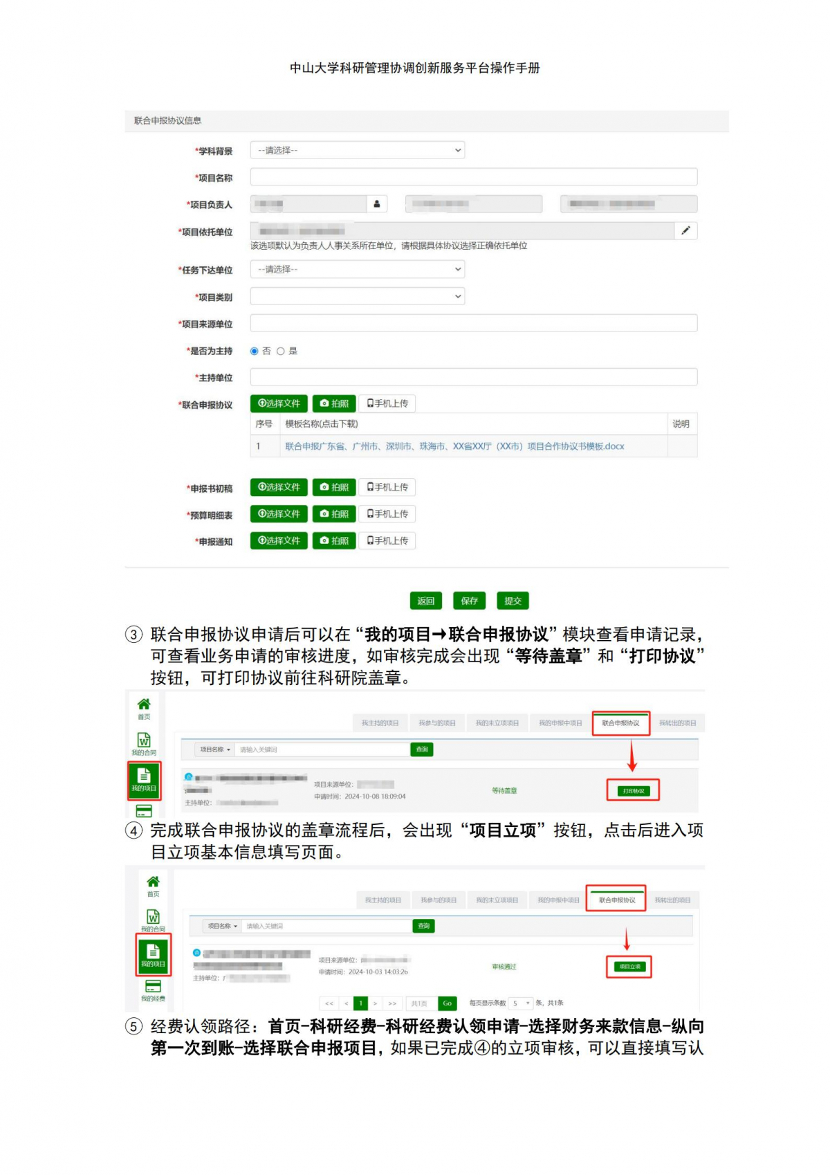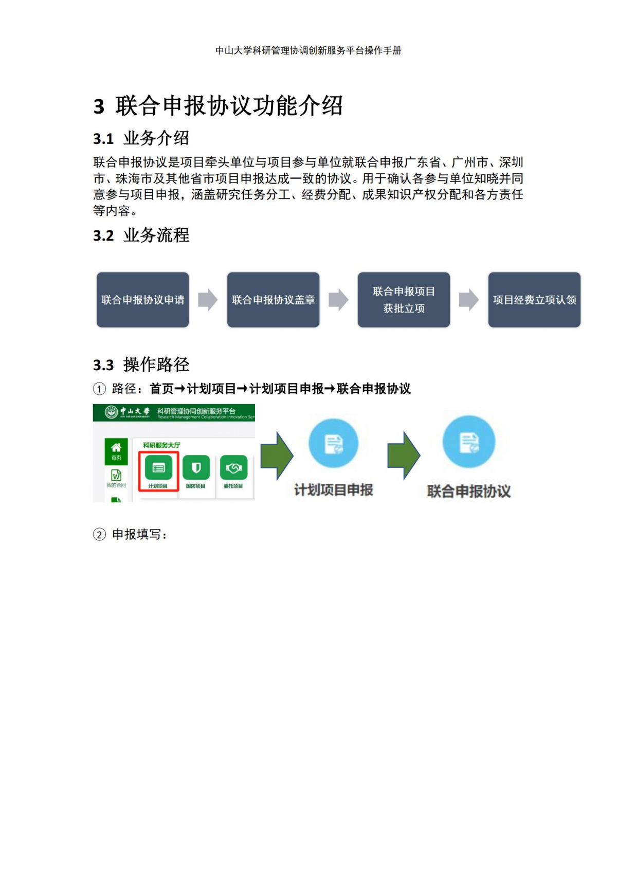 为进一步推动科研项目申报工作的规范化、高效化管理,切实提升科研协同创新能力与服务水平,我校科研管理协同创新服务平台已上线“联合申报协议”审核模块。联合申报广东省、广州市、珠海市及其他外省市科技计划项目(不含深圳市)的联合申报协议均可通过系统“联合申报协议”模块提交审核(操作指引详见附件),审核定稿后办理盖章。