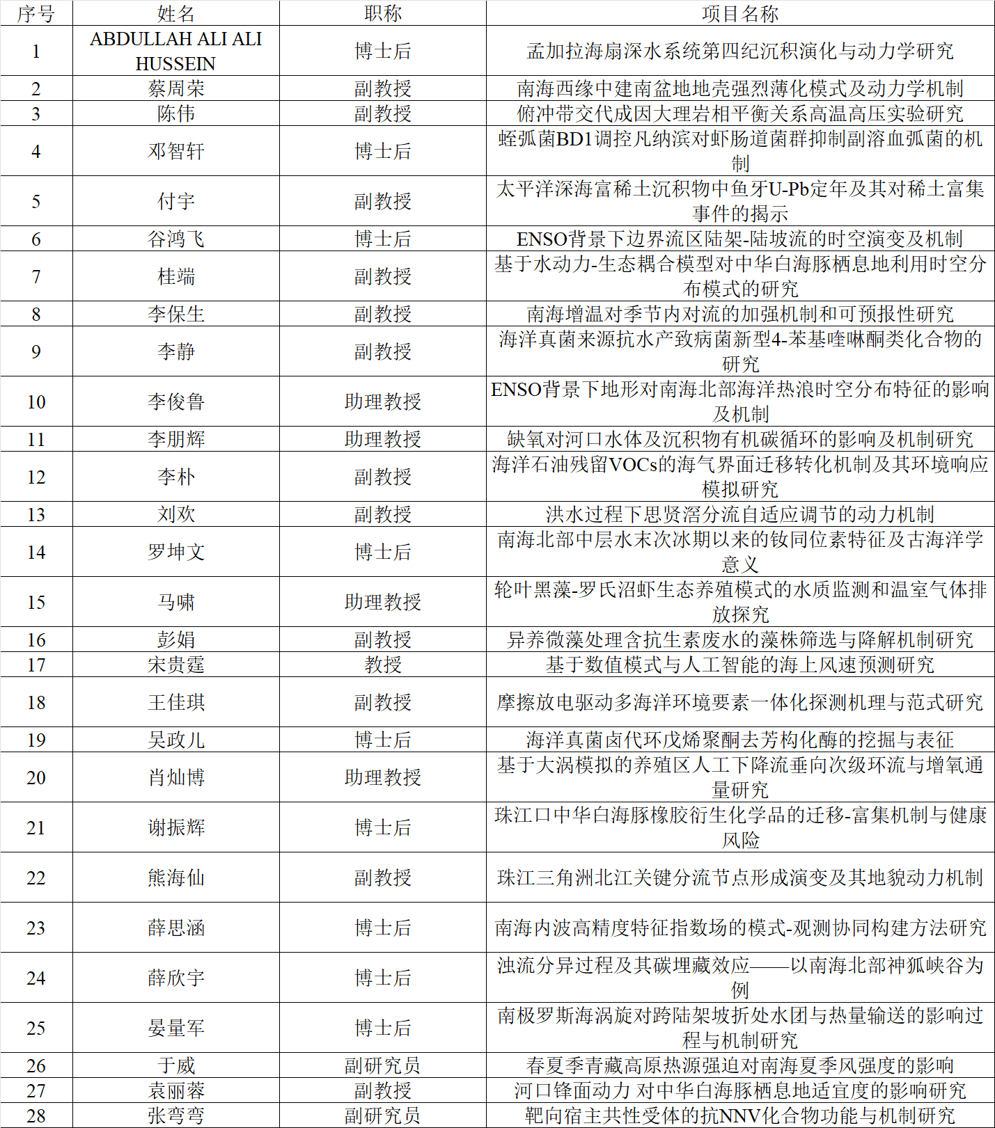 经初步形式审查,现将学院审查通过的28个项目予以公示(按申请人姓氏拼音排序)。