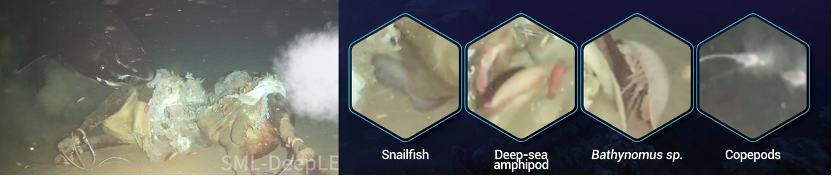 (3)太平洋睡鲨的进食动作和与之出现的生物访客被记录: