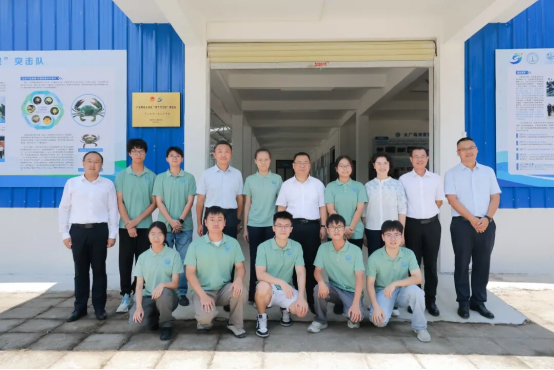 随后,在广东青年大学生“百千万工程”突击队中山大学·台山工作站暨大广海湾青蟹种苗繁育示范中心,调研组深入调研了“百千万工程”实践服务活动开展情况。太阳成集团tyc9728“百千万工程”突击队通过分子标记与基因组选育技术,显著提升高附加值膏蟹、黄油蟹的育成比例,并构建“建立“1(一个种源中心)+N(适应多样化养殖条件)”的青蟹扩繁体系。2025年暑期,突击队联合地方政府开展技术培训,深入养殖一线破解种源与技术难题,初步摸清了蟹苗成活率低,耗饵量大,养殖产出较低,养殖收益不理想的痛点与难点,并在研发中心老师们的指导下,寻找合适的技术改良方案,助力提升蟹苗成活率与养殖效益。