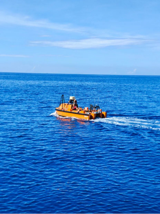 本航次聚焦台风对海洋环境的影响,构建起空、海、表、体一体化的立体观测网络:借助自动气象站和探空气球观测,捕捉大气边界层结构演变;利用走航ADCP和FerryBox系统实现海流剖面连续测量及表层水温、盐度、化学要素的高分辨率监测;通过CTD剖面探测和多层次生化采水,解析海洋物理和生物化学环境的垂向特征。同步开展海面遥感对比观测,为卫星遥感数据的真实性检验提供支撑;运用VMP剖面仪进行湍流微观结构测量,揭示海洋能量传递过程。在南方海洋科学与工程广东省实验室(珠海)的大力支持下,航次成功实现无人船自动追踪探测锋面区域,展现了我国海洋观测技术的先进水平。