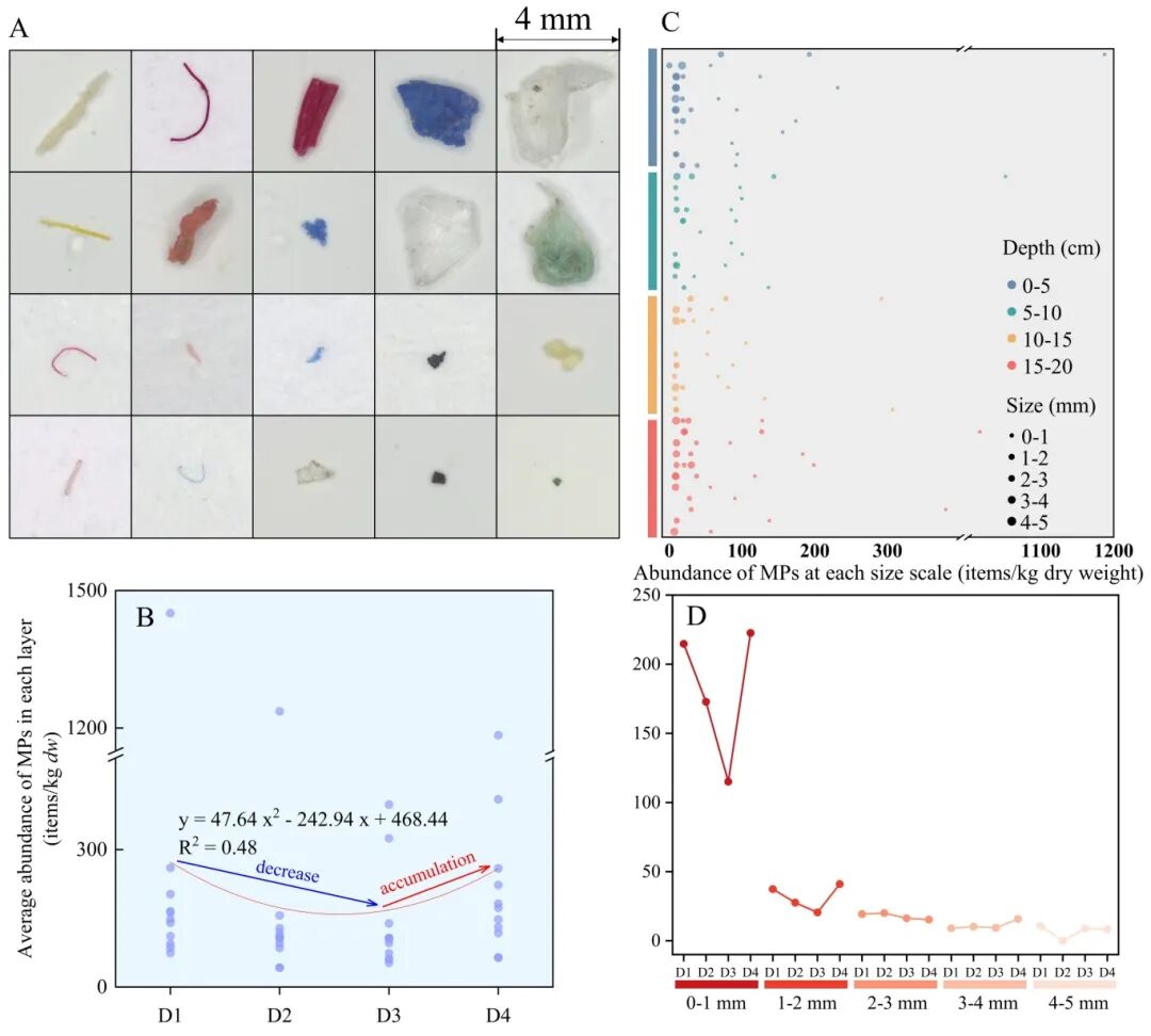 图1: 菲律宾海深海沉积物中微塑料的形态、丰度和尺寸分布特征