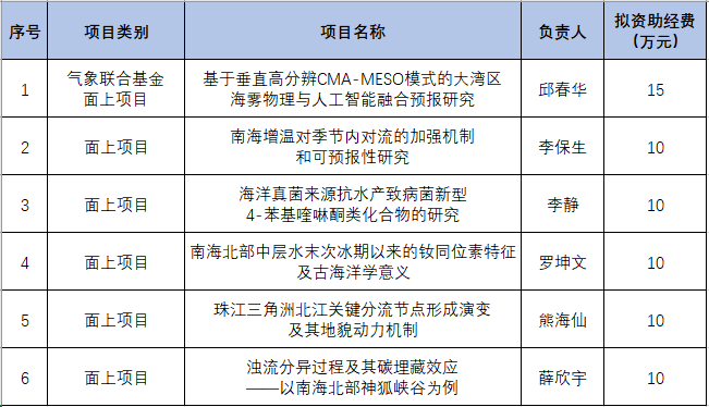 近日,广东省科学技术厅发布了《广东省基础与应用基础研究基金委员会关于2025年度广东省基础与应用基础研究基金气象联合基金拟立项项目的公示》和《广东省基础与应用基础研究基金委员会关于2026年度广东省基础与应用基础研究基金自然科学基金拟立项项目的公示》。在全院教师与科研人员的共同努力下,我院2025年度广东省气象联合基金项目获批1项,2026年度广东省自然科学基金项目共获批5项面上项目。