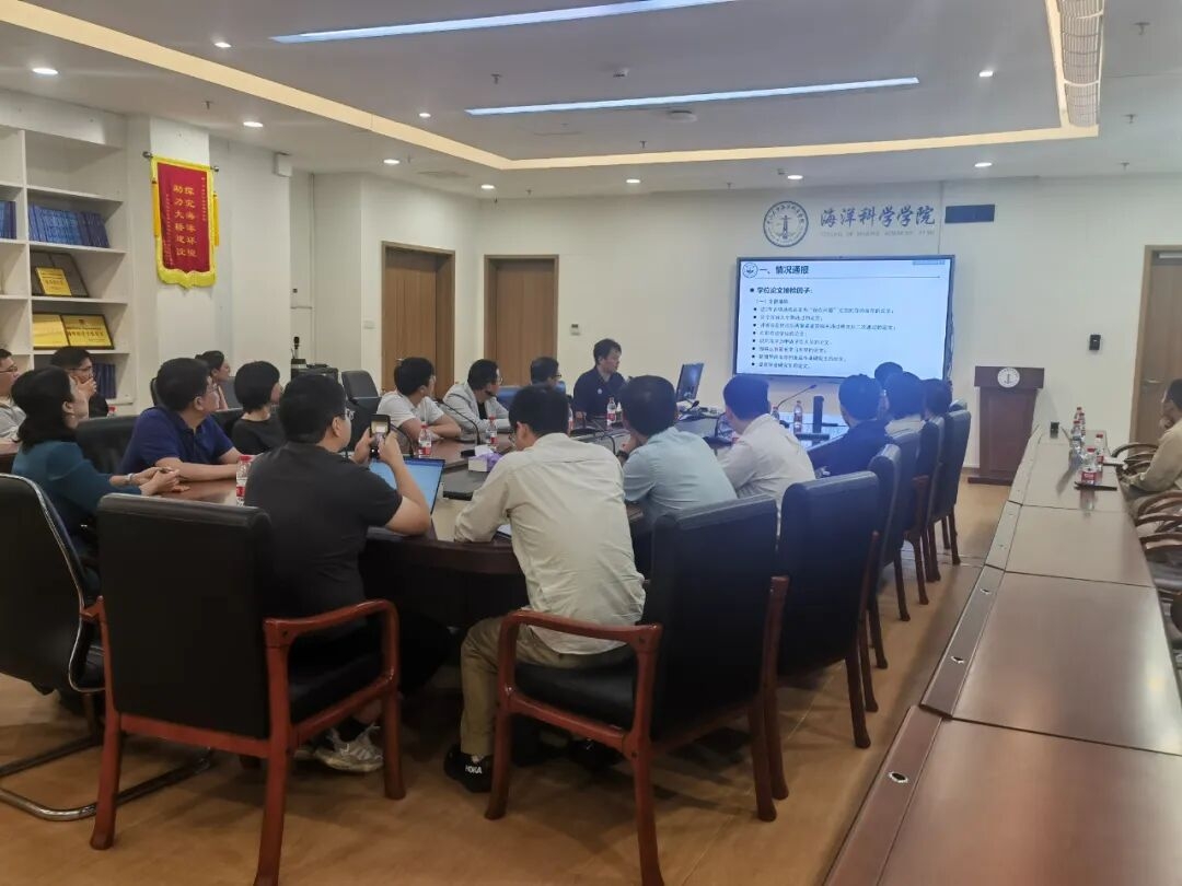 会上,赵俊教授围绕学校学位论文抽检机制、问题论文处理办法等核心政策进行解读,强调学位论文质量红线。会议特别邀请原国家海洋环境预报中心主任王辉研究员做研究生学位论文指导经验分享,他指出要加强对研究生培养全过程管理,关键环节要把好关。在研讨环节,参会教师就如何提升研究生学位论文质量展开积极讨论,深入交流,凝聚形成多项共识。