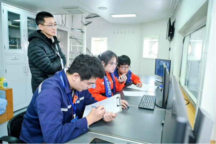 11月29日,各参赛队伍齐聚“东方红3”号海洋科学考察船,围绕海洋科学四大专业方向开展了全方位实践考核,包括海水pH测定、表层沉积物描述、船载仪器认知、浮游植物鉴定等4项实验室操作,以及水样分取、箱式采泥器取样、海床基安装、浮游生物垂直拖网、CTD操作等5项甲板作业。比赛全面检验了学生在理论知识、实验技能、海上操作能力及复杂海况应对等方面的综合素质。在当日海况不佳、身体不适的情况下,我院队员仍以坚韧意志克服挑战,高质量完成各项任务,展现了海洋学子的专业能力与团队精神。