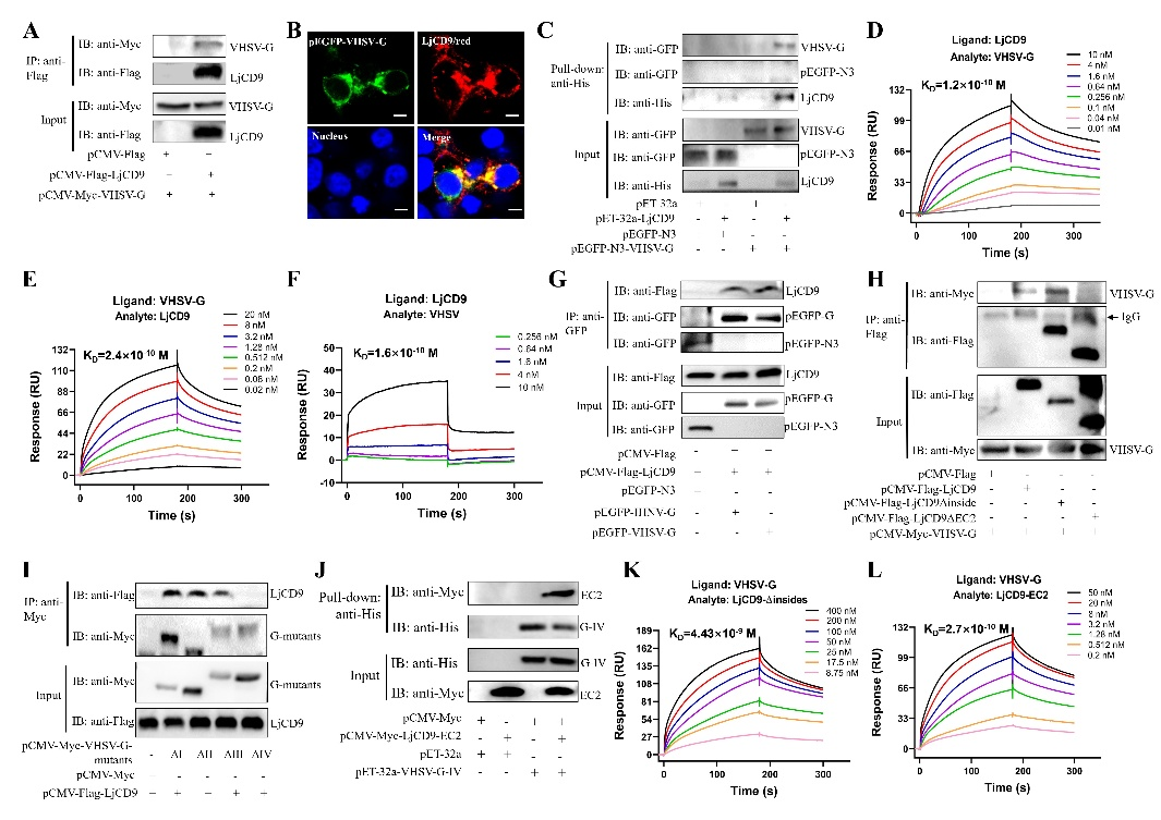 图1 实验证明海鲈CD9和VHSV G蛋白直接结合