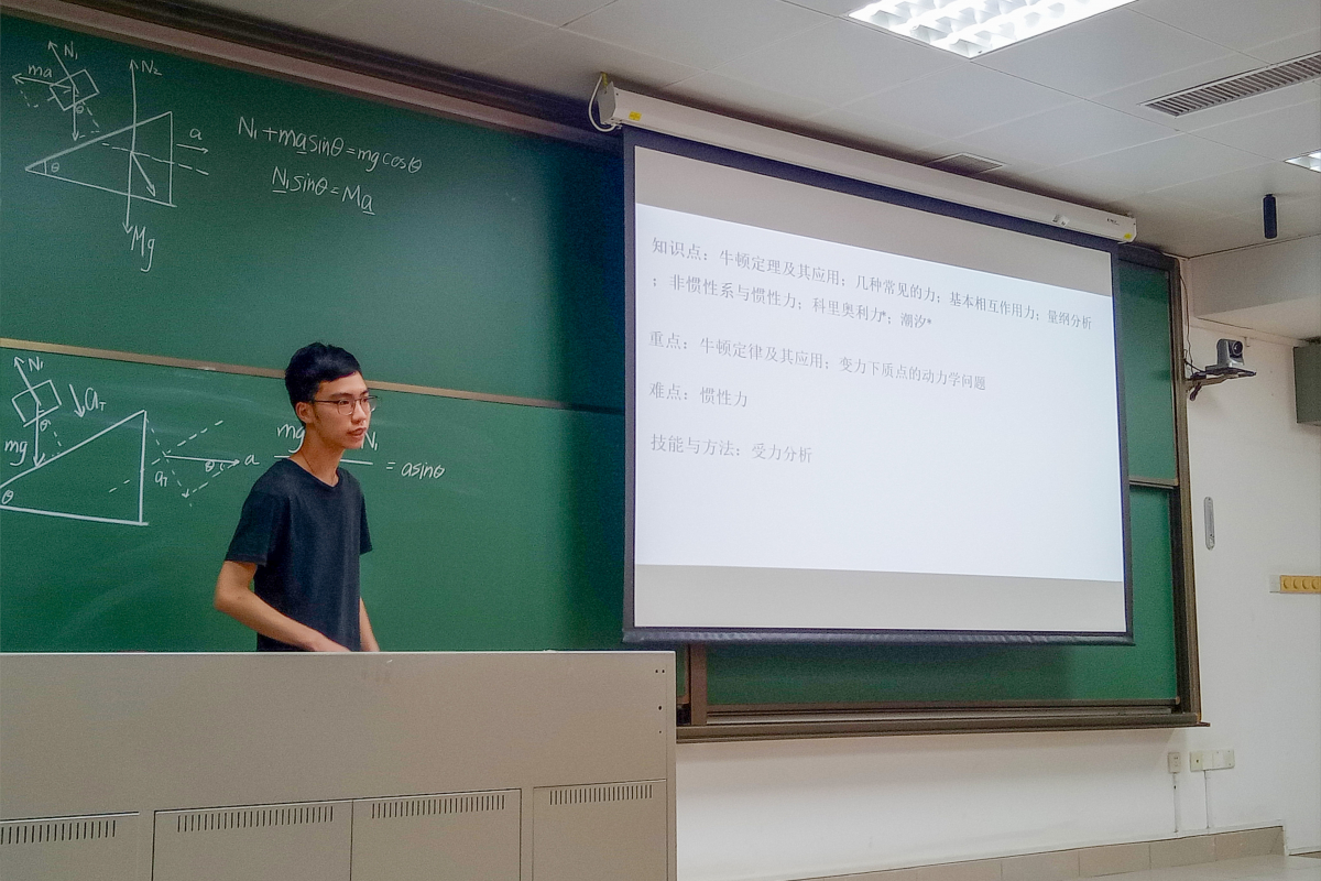 2019级吴梓恒同学负责“大学物理”的课程讲解。他首先向同学们讲解了高中物理和大学物理的区别,引导大家转换思维,并回答同学们对学习方法、学习态度的疑问。随后,吴梓恒对课程重难点进行讲解。他总结的解题方法和课程笔记内容丰富详实,让同学们收获良多。
