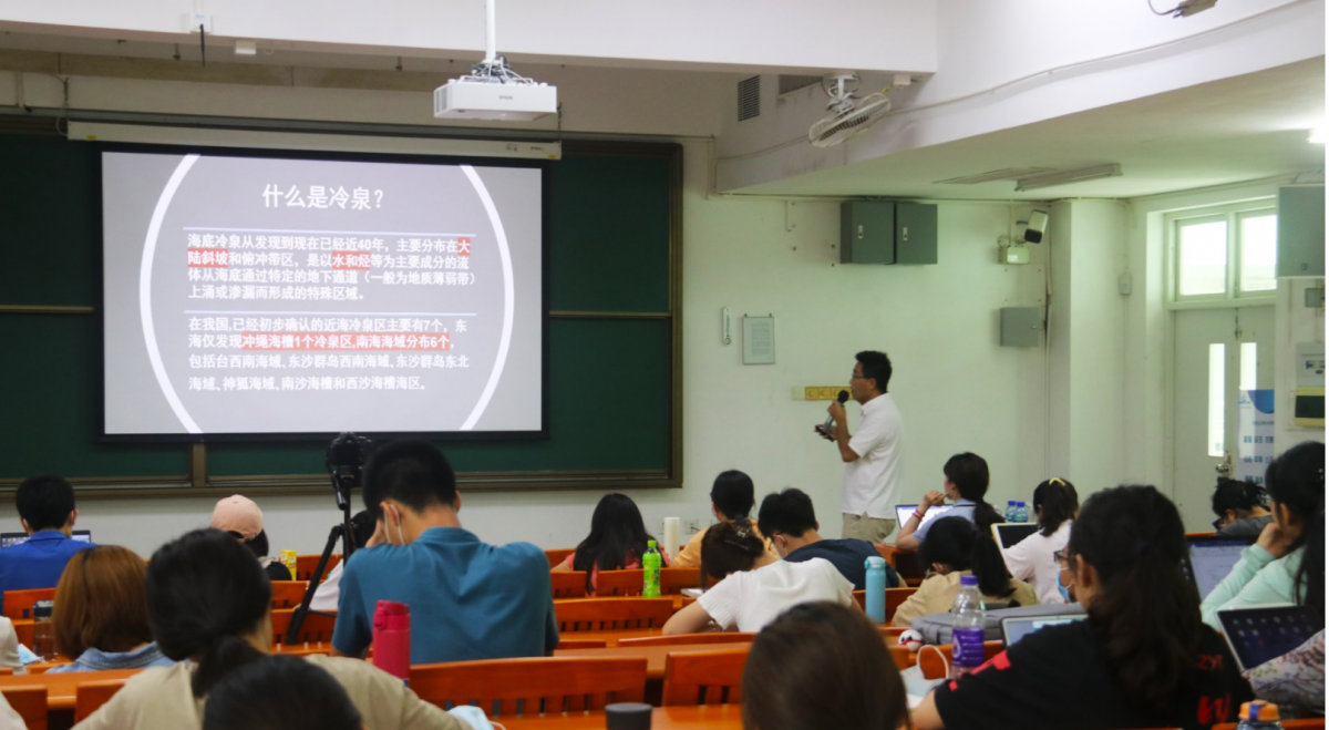 而后,董西洋副教授通过实例讲解的方式,向同学们介绍了深海冷泉领域最新研究进展。他鼓励同学们在学习中深入思考,积极提问,为科研工作奠定良好的知识基础。本次讲座兼具学术性与趣味性,内容充实,发人深省。同学们认真听讲,反响热烈。讲座后,同学们还与董西洋老师进行更加深入的交流。