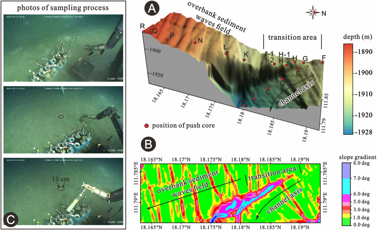 以上研究成果发表于中科院大类二区期刊《Geomorphology》(KunwenLuo, ShanLiu, MingSua, HaitengZhuo, HeqiCui, HuiChen, YapingLei, MingdongYu. Geomorphology of a bended submarine canyon in Wanhu Seamount region, northern South China Sea: insights from manned submersible observation and measurement)。我院博士研究生罗坤文为文章的第一作者,苏明教授为通讯作者。