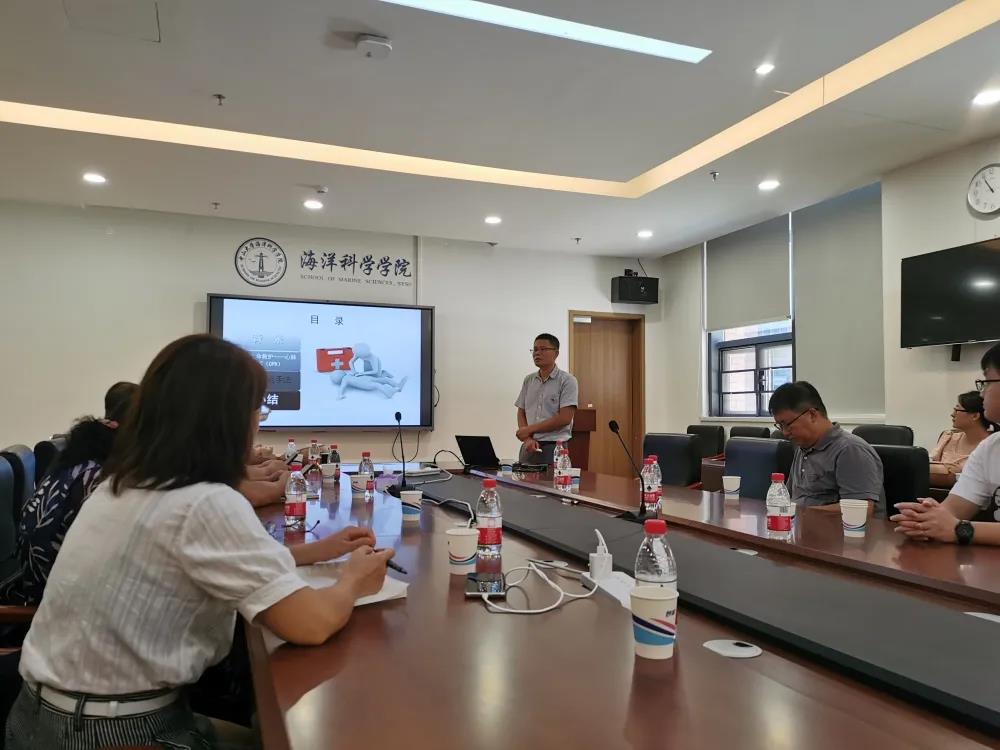 培训开始前,李春荣书记对中山大学附属第五医院林伟庭书记及医护人员的到来表示欢迎和感谢。他指出,掌握必要的急救知识和技能,提高突发疾病时自救互救能力对守护师生身体健康和生命安全有重要意义。我院在上学期已经在海琴3号楼公共区域配置了AED,他希望通过此次活动,在师生中普及应急救助知识和技能,同时不断加深与附属五院之间的联系,扎实做好学院师生健康保障工作。林伟庭书记向我院老师们致以节日问候和祝福。他表示,今天是教师节,明天是世界急救日,举办这个活动非常有意义。他指出,今后医院将继续加强与珠海校区各学院之间的联系,常态化深入校园和学院举办各类健康宣教活动,持续为广大师生的健康保驾护航。