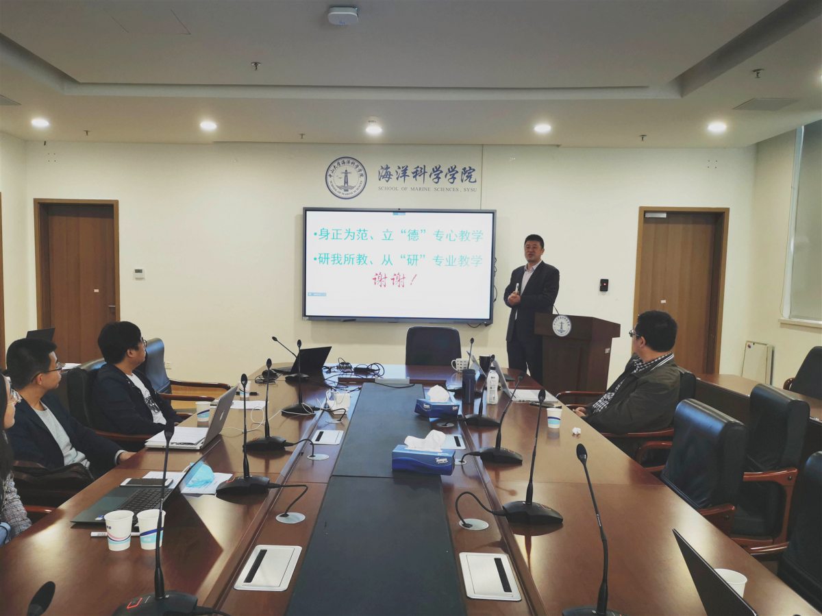 培训会开始由学院李春荣书记作“师德师风与科研经费使用”的报告,向新教师重点介绍科研经费使用的常用管理规定及违规案例分析,强化了日常的警示教育作用;学院苏明副院长作“海洋地质课程思政建设经验”分享,我院《海洋地质学》课程被广东省教育厅正式认定为广东省本科高校2021年课程思政教学改革示范课程和2021年度省级一流本科课程(课程思政)。苏明副院长强调,学院将围绕“理念-操作-管理-成效”,强调海洋科学的专业性和天然优势,确定“三步走”战略。计划到2023年,实现专业课程思政建设全覆盖。