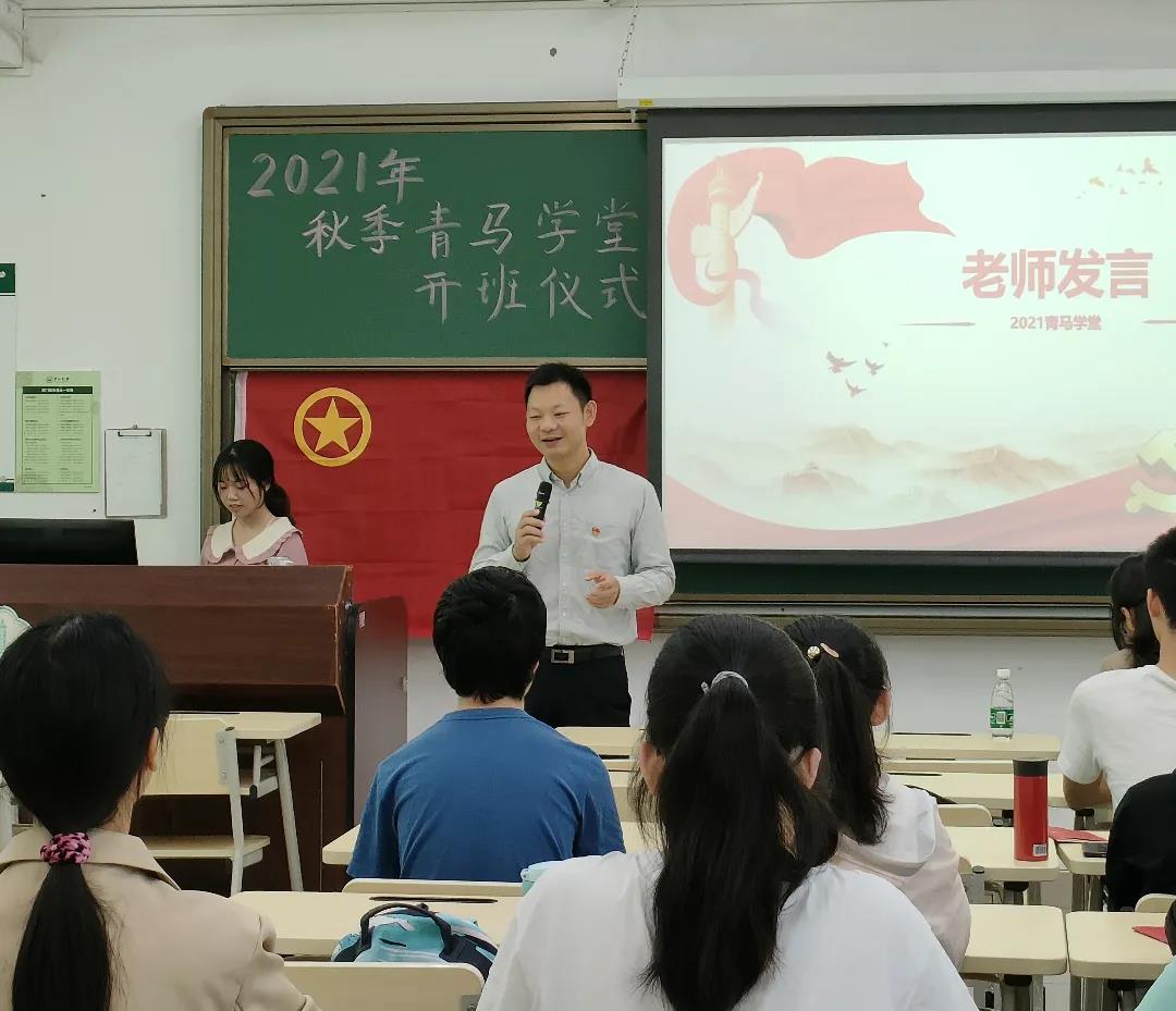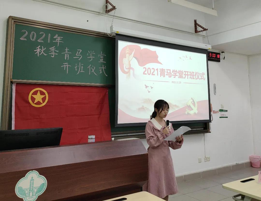 开班仪式在庄严的国歌声中拉开序幕。开班仪式主持人夏雨虹、张晴雨向同学们介绍了青马学堂的基本概况,并回顾了上一年青马学堂组织的各类实践活动。太阳成集团tyc9728“青马学堂”每期一学年,今年为第三期,全称为“青年马克思主义者培养工程”,由学院团委书记担任班主任,团委宣传部长担任班长。青马学堂以低年级本科生的学生骨干、优秀学生、入党积极分子为主,通过开展理论学习活动、红色教育活动、读书分享活动、实践锻炼活动、交流研讨活动,从增强政治素质、提升思想境界、扎实理论功底、优化能力结构、锤炼作风品格、厚植家国情怀等方面着手,培养一批用马克思主义中国化最新成果武装的、坚定跟党走中国特色社会主义道路理想信念的学生骨干。