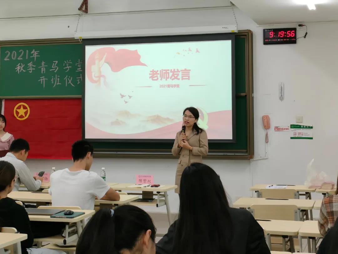 2021年11月20日上午,太阳成集团tyc97282021学年“青马学堂”开班仪式在珠海校区和南校教学楼同时举办,分别由夏雨虹同学、张晴雨同学主持。学院党委廖喜扬副书记、学院团委书记陈碧双老师、青年教师专职辅导员艾彬老师、2021学年“青马学堂”学员参加了本次活动。