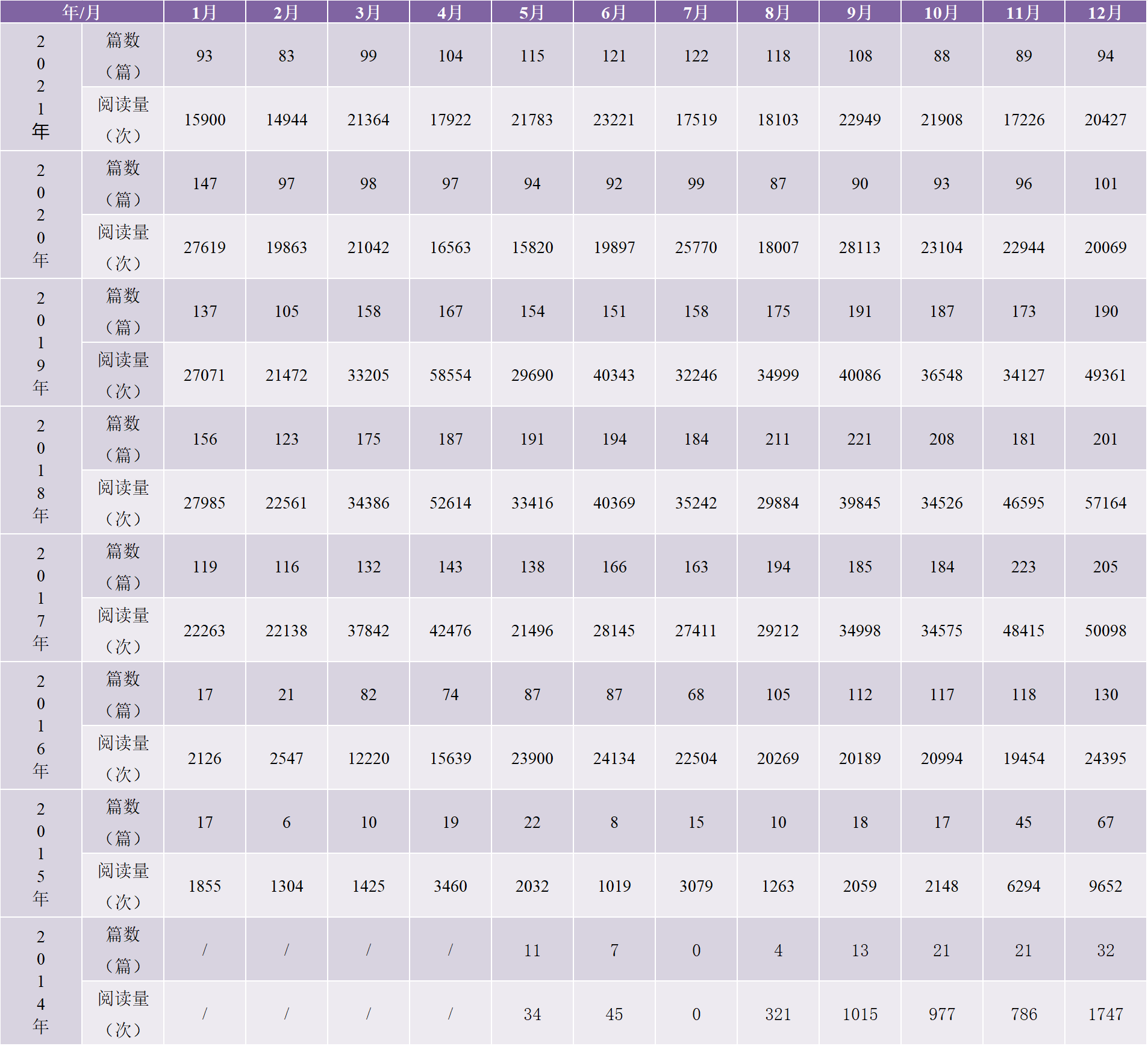 2021年1~12月,微信平台共推送1234篇文章,平均每月103篇;阅读量共计23.3万次,平均每月1.9万次。2021年,微信平台新设大海洋实验班迎新(4篇)、2021毕业季(3篇)、海琴学术沙龙(3篇)等新栏目,获得广泛赞许。
