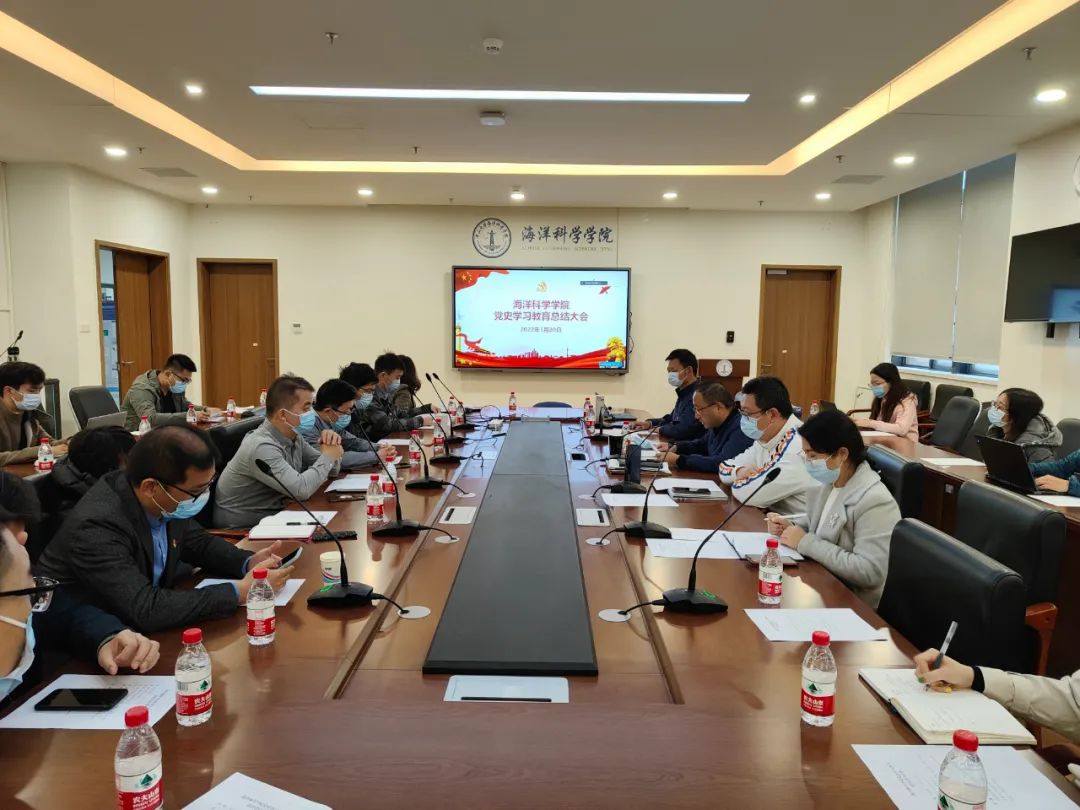 会议强调,在全党开展党史学习教育,是党中央立足百年党史新起点、着眼开创事业发展新局面作出的一项重大战略决策;要深入学习贯彻习近平总书记重要指示、重要讲话精神,深入学习贯彻党的十九届六中全会精神,持续巩固拓展和深化党史学习教育成果;要将党史学习教育成果转化为学院事业发展动力,推动学院事业内涵式高质量发展,为海洋强国梦添砖加瓦。