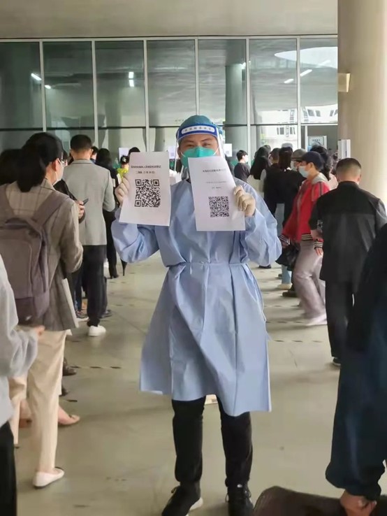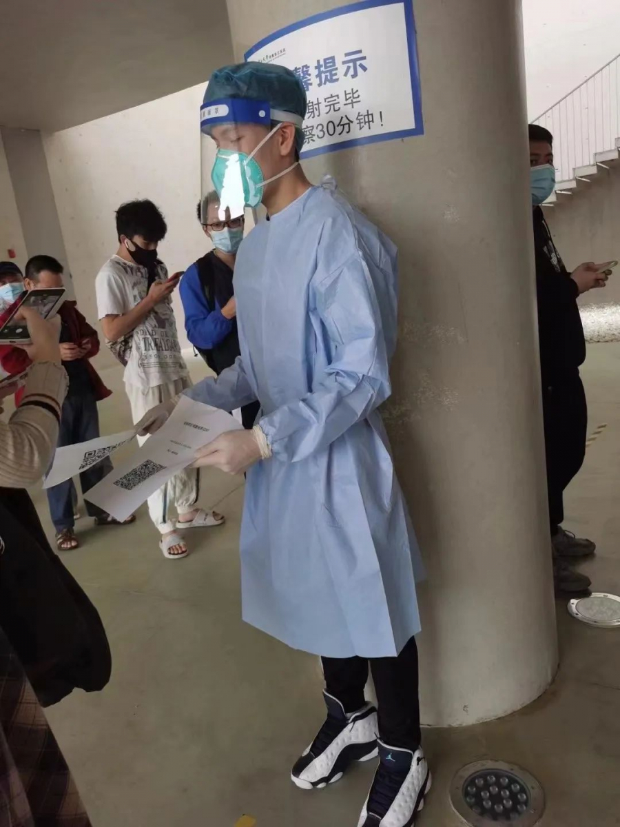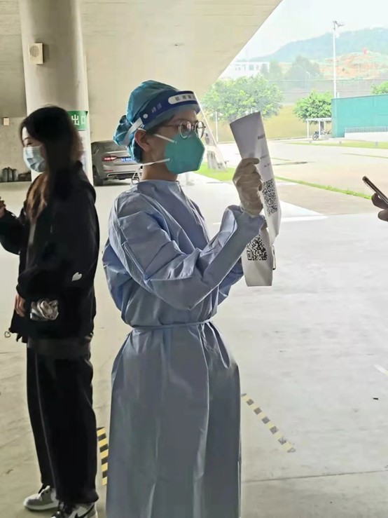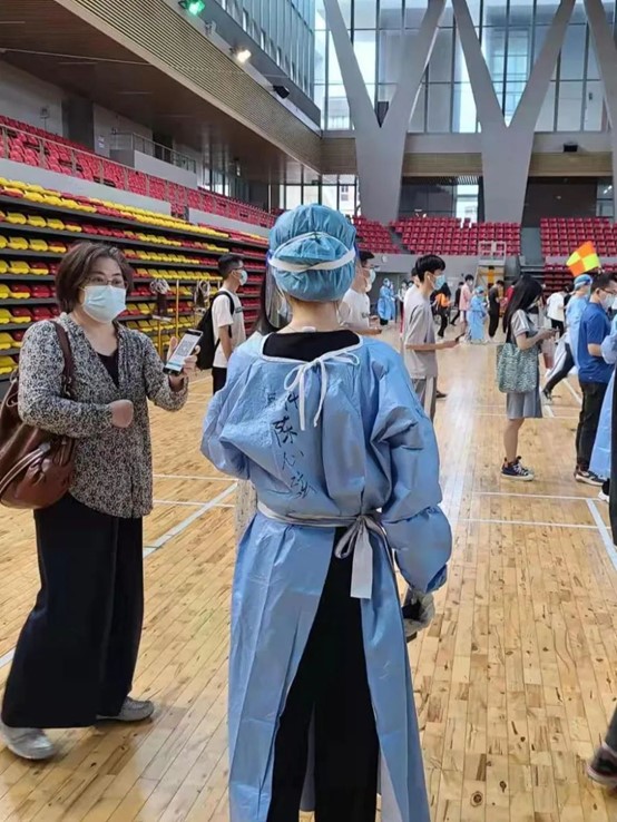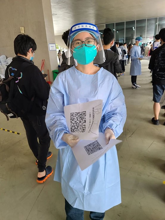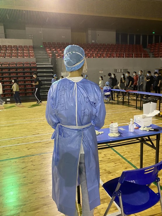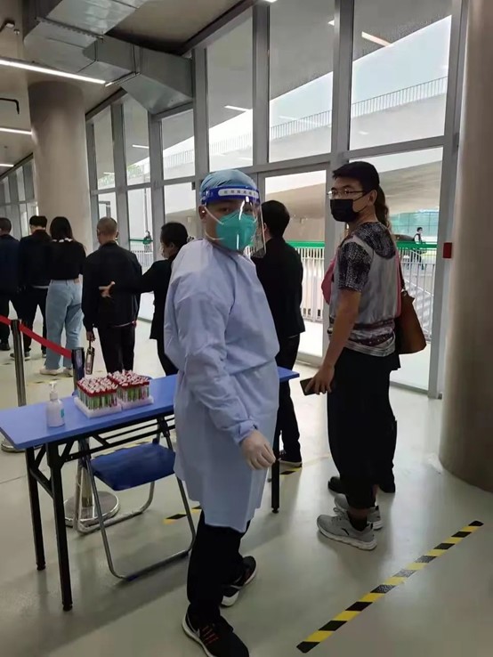 我很荣幸能以志愿者的身份参与到抗疫的工作中。在这次志愿服务中我深刻感受到抗疫工作者的不易:和全国各地奋不顾身、风雨无阻、夜以继日的医护人员的工作环境相比,学校核酸采集环境条件相对更好,但这样的条件下我仍切身感受到身穿防护服的闷热,更对全国上下所有抗疫工作者感到由衷崇敬。众志成城,共克时艰,在全国各行各业人民的共同努力下,相信疫情很快会散去,回归疫情前的生活。