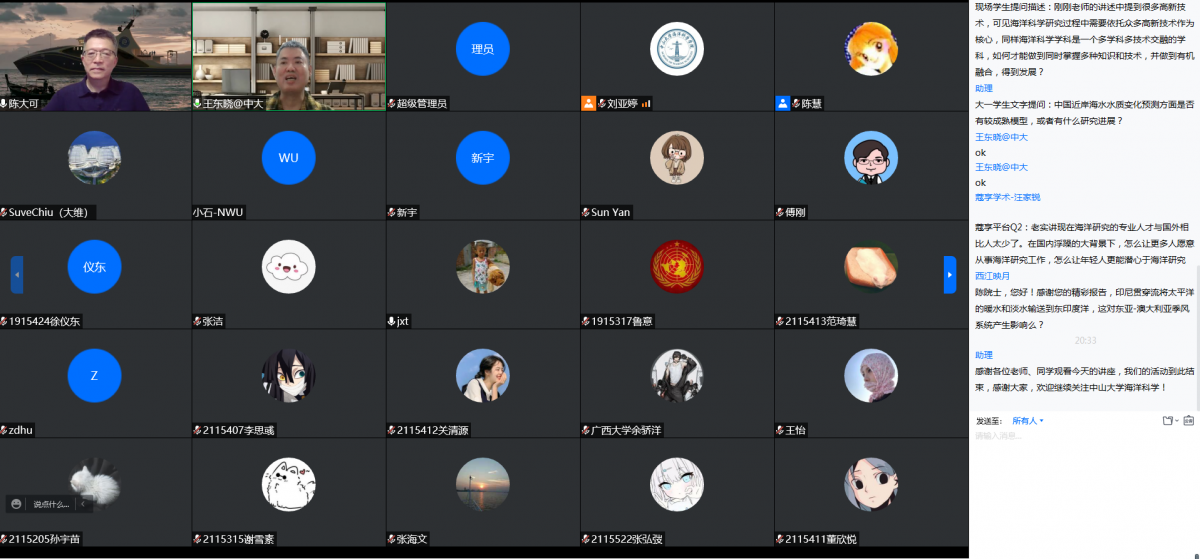 陈院士的精彩讲授激发了同学们浓厚兴趣,大家就海洋科学发展现状、未来方向和有关环流、气象等专业学术问题踊跃提问,陈院士也结合自身经历给予了详尽的解答。最后,本次以“海洋研究的态势与愿景”为主题的专业导学公开课在广大师生“探索未知、向海图强”的美好愿景中圆满结束。