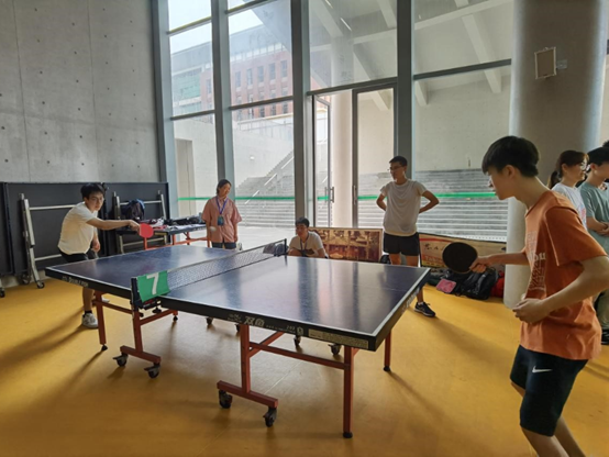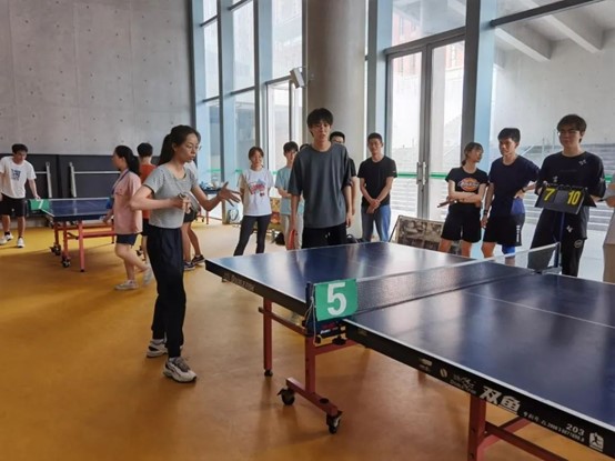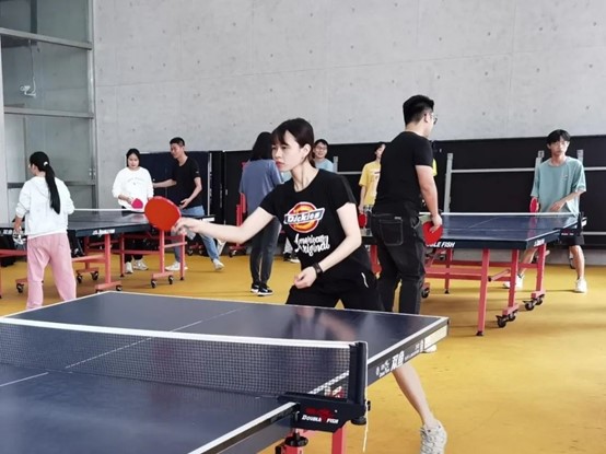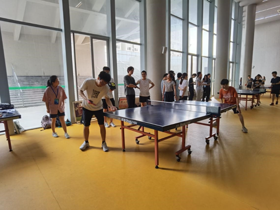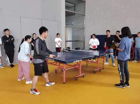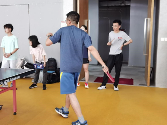 2022年4月,学院工会的付宇老师组织我们老师报名参加师生团体赛。在海琴3号的球台,重拾球拍与学院的研究生和其他老师练习了一周。最终,我、苏明、李亚丽和林玮四位老师组成“出汗队”,张恒老师与本科生组成师生联队。