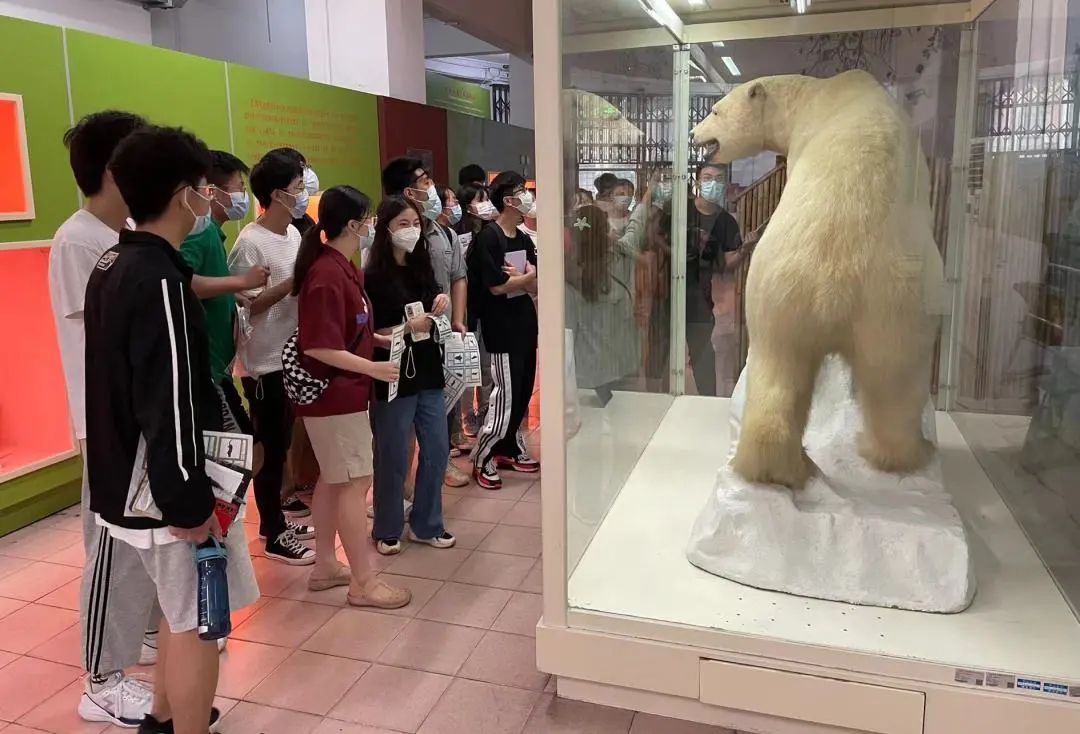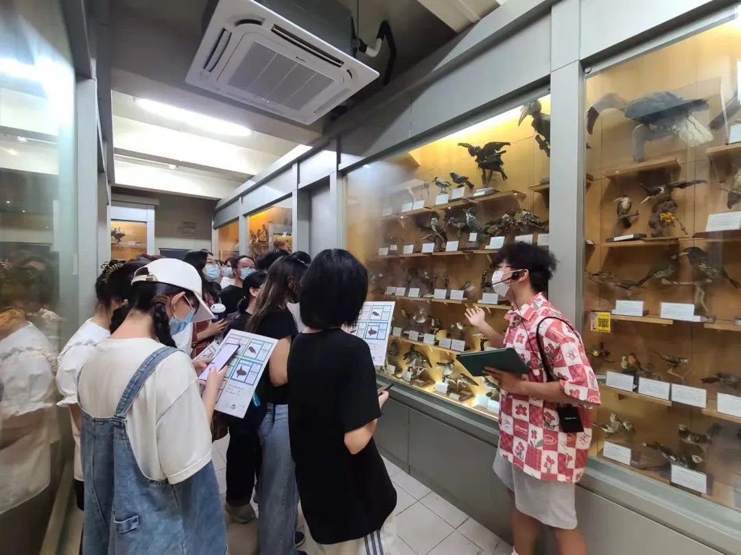 学生讲解员介绍道,该馆是中国首家纯高校属性的国家二级博物馆,由动物、昆虫、植物和化石标本馆组成,最早的标本采集于十九世纪初。同学们不由对生物博物馆的深厚历史底蕴感到惊讶。