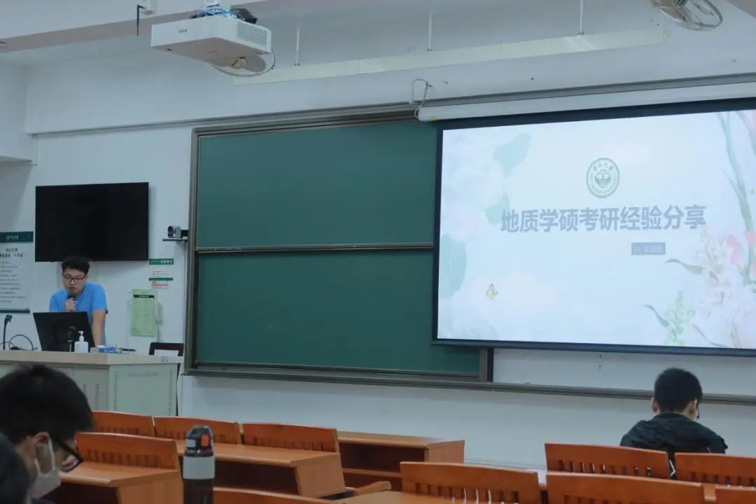 海洋地质方向的史超奇带大家了解了考研的基本概况,并表示岩石学的复习要着重于三大类岩石的典型结构、构造、化学成分、背景成因、分类、区别和联系、野外区分。他鼓励大家“心态决定一切,不到最后不要放弃”。