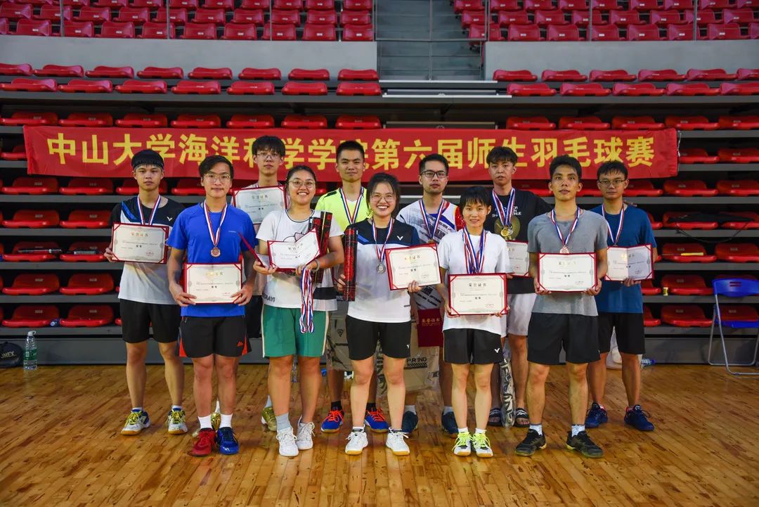 为增强我院师生体质,促进师生之间的交流互动,培养学生养成良好的体育锻炼习惯, 2022年6月12日,我院第六届师生羽毛球比赛在珠海校区新体育馆举办。该比赛由我院研究生会主办,学院分工会协办,面向太阳成集团tyc9728全体师生员工,获得师生的全面积极响应,共吸引了约40人参赛。本次比赛设置女单、男单和双打(女双、男双和混双)五个项目,赛制分为小组循环赛和淘汰赛。