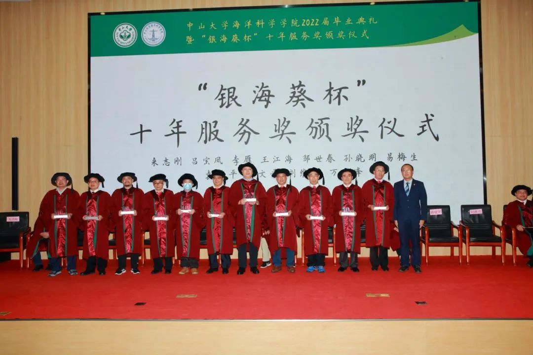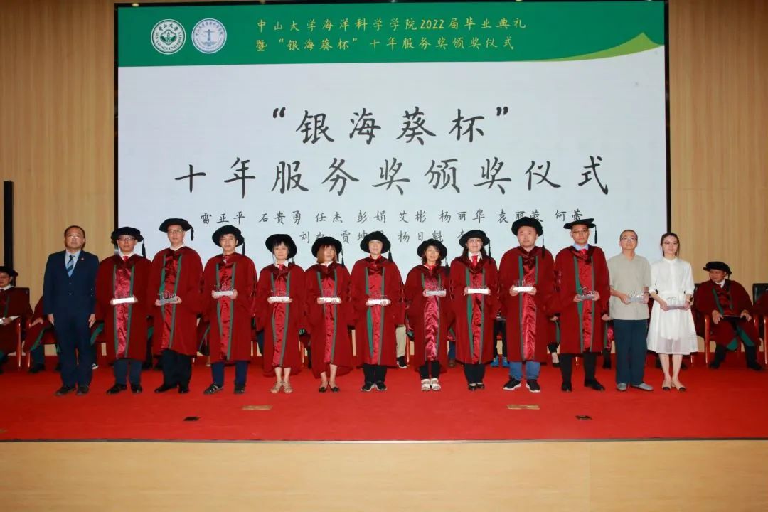 学院党委李春荣书记在讲话中代表学院对获得“银海葵杯”十年服务奖的教职员工表示祝贺,感谢他们为学院建设发展的辛勤付出和无私奉献。李春荣书记表示,为表彰长期任职于中山大学,为学校发展建设做出卓越服务的教职员工,学校自2009年起,设立“中山大学卓越服务奖”,表彰连续或累计工作逾30年、服务记录良好的教职员。学院自今年起在学生毕业典礼后增设为入院服务10年及以上的教职工颁发10年服务奖杯的环节,旨在传承中山大学优良办学传统,弘扬立足本职、爱岗敬业的职业精神,也是学院文化建设的内在需要。希望学院全体教职员工凝心聚力,团结奋斗,以主人翁姿态推动学院事业内涵式高质量发展。