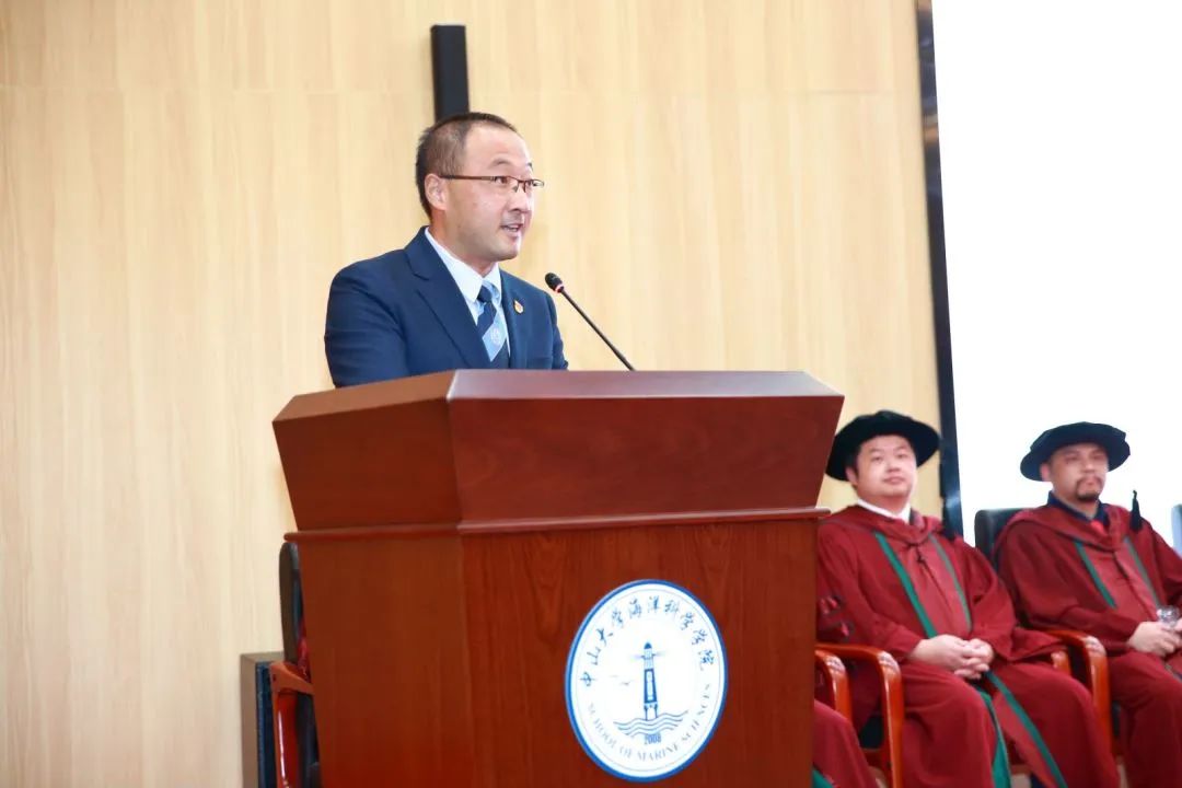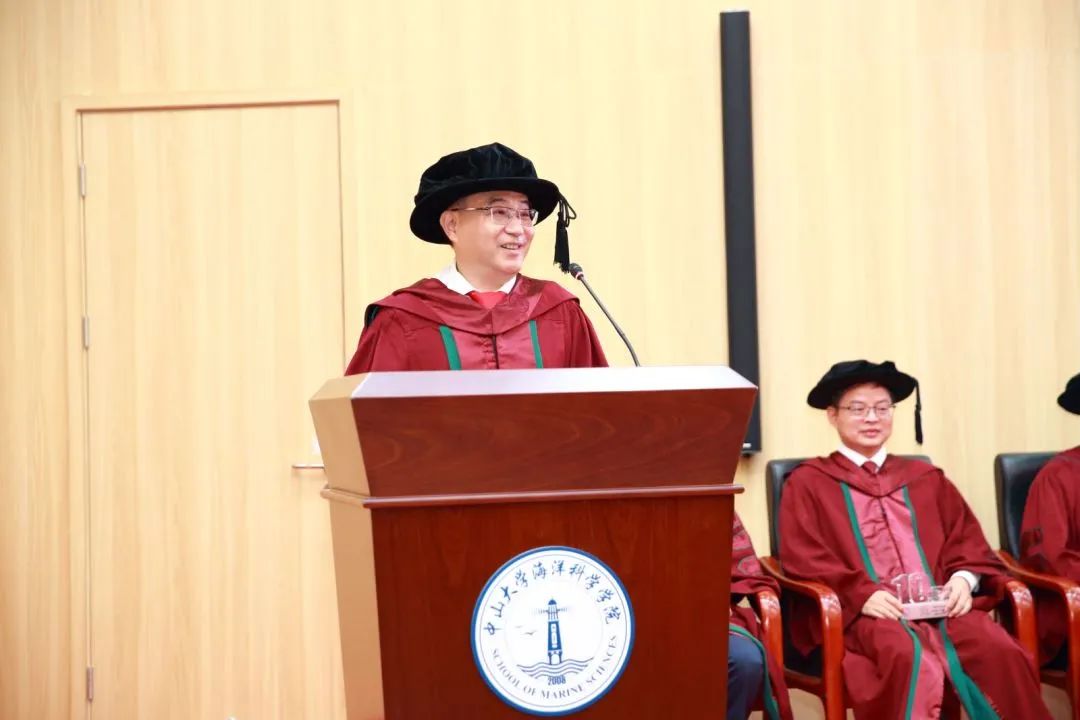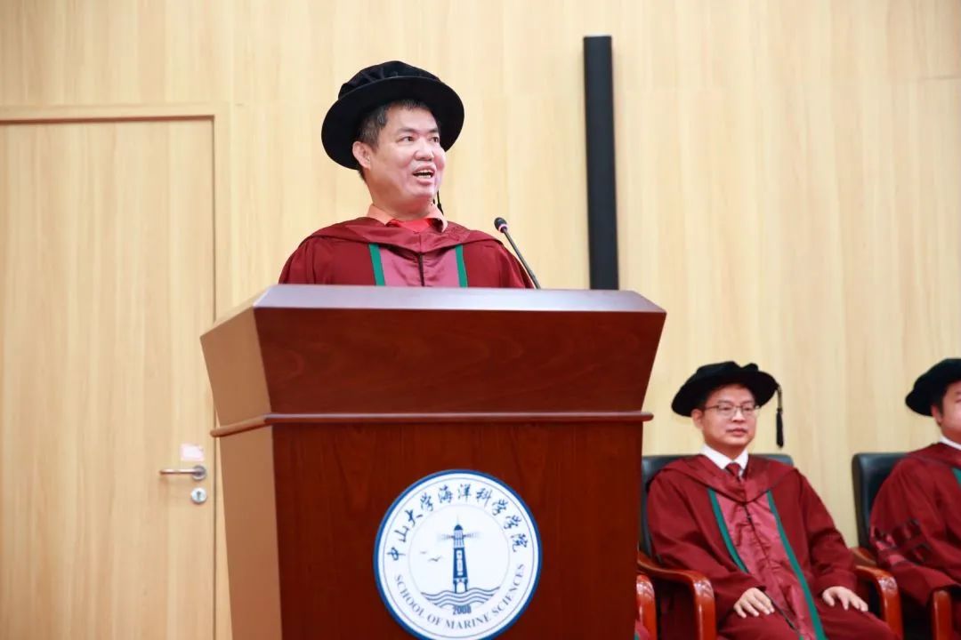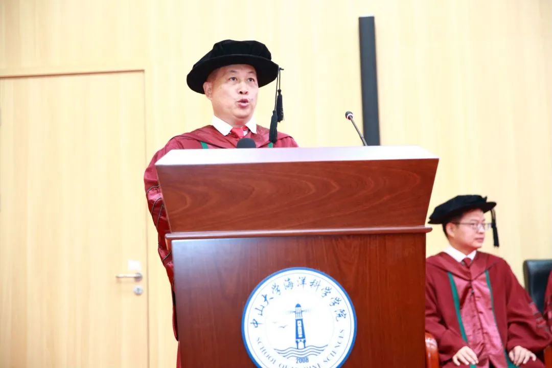 授礼结束后,学院王东晓院长致辞。王院长表示,毕业意味着新的起点,也将担负新的责任,希望同学们要要保持青年人的激情和活力,勇于担当、学会担当,树立雄心壮志,掌握真才实学,不断提升自己报效祖国、服务社会的能力,努力成长为国家海洋事业的领军人才和骨干力量,为海洋强国建设做出我们的一份贡献。