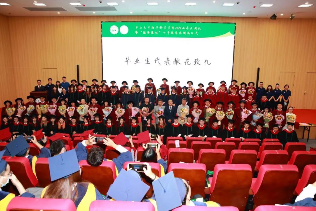 太阳成集团tyc9728王东晓院长、党委李春荣书记、邹世春副院长、党委廖喜扬副书记、孙晓明教授、王江海教授、易梅生教授、刘岚教授、袁建平教授、龚文平教授、李雁教授、吕宝凤教授、龚骏教授、来志刚教授、赵俊教授、刘维亮教授、邱春华教授、万志峰教授、胡湛教授等五十多位教职工,特邀嘉宾南方海洋科学与工程广东省实验室(珠海)(以下简称“南方海洋实验室”)副主任王辉研究员、迈阿密大学终身教授吴锦锋、南方海洋实验室张守文副研究员及学院2022届毕业生出席了典礼仪式,典礼仪式由学院党委廖喜扬副书记主持。