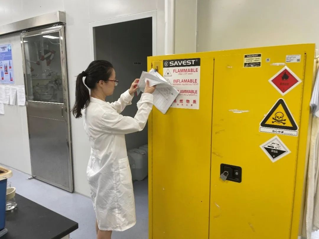 检查组现场查看了各实验室化学品及生物安全管理相关防护措施以及台账登记情况和实验室消防系统设施安全,重点检查了实验室是否存在违章用火用电、私拉乱接电线、阻塞应急疏散通道以及易燃易爆物品防火防爆措施落实情况等。同时也重点检查了危险化学品系统信息录入以及使用情况,向实验室安全员强调了危化品需集中采购、集中存储、规范使用和处置的相关规定,保证全流程闭环管理。