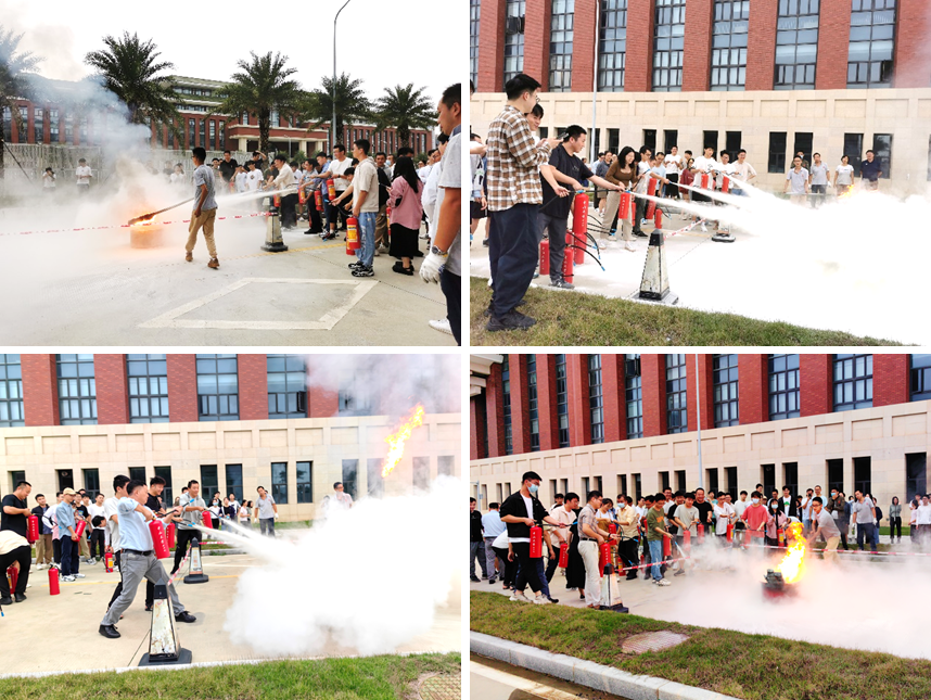 随后师生移步灭火演练地点,工作人员已准备好演练火桶。在工作人员的指导下,老师和同学们依次拿起灭火器进行灭火实操演练。