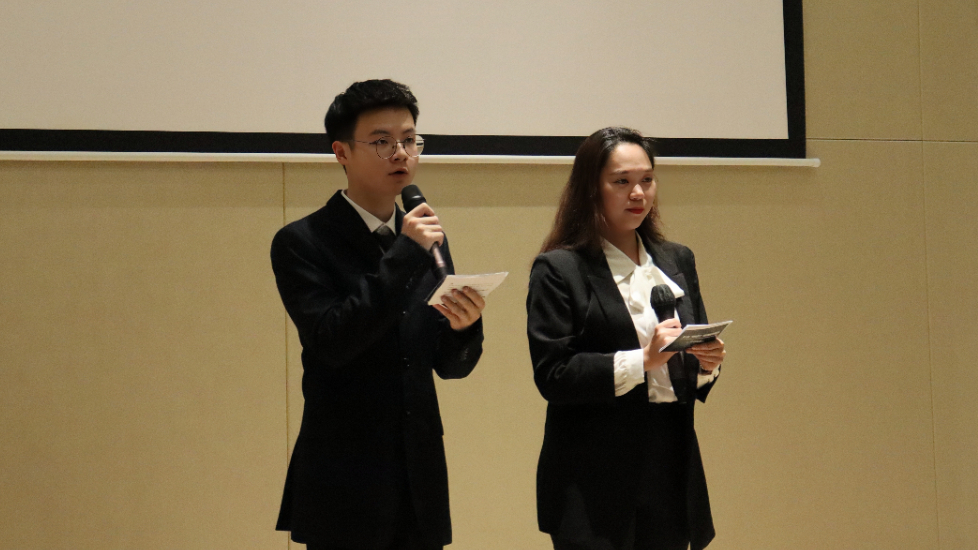 2022级物理海洋学硕士研究生陈晓东与2020级本科生黎梦真主持活动