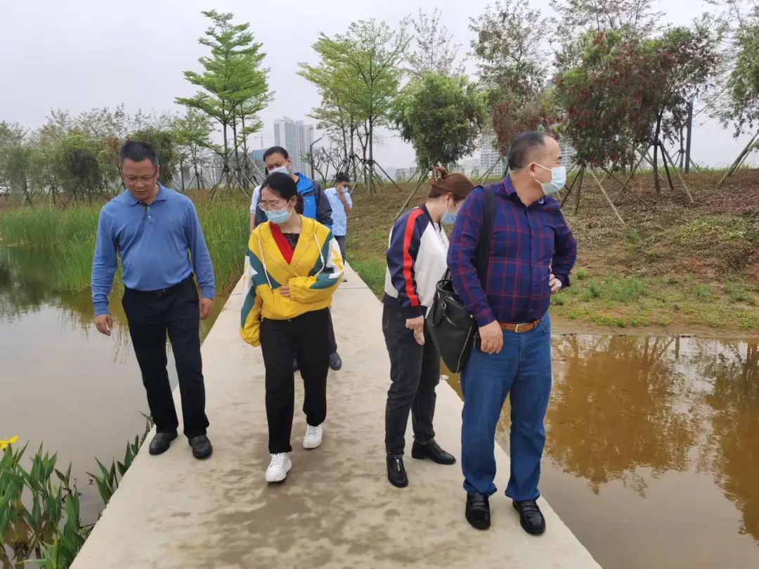 现场检查冯家江流域生态修复项目(左二)