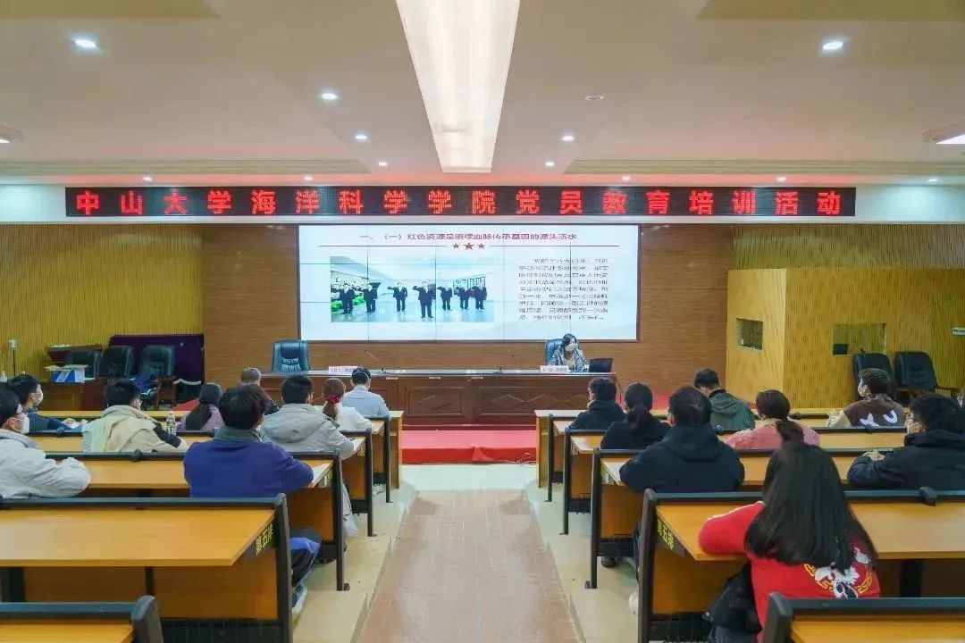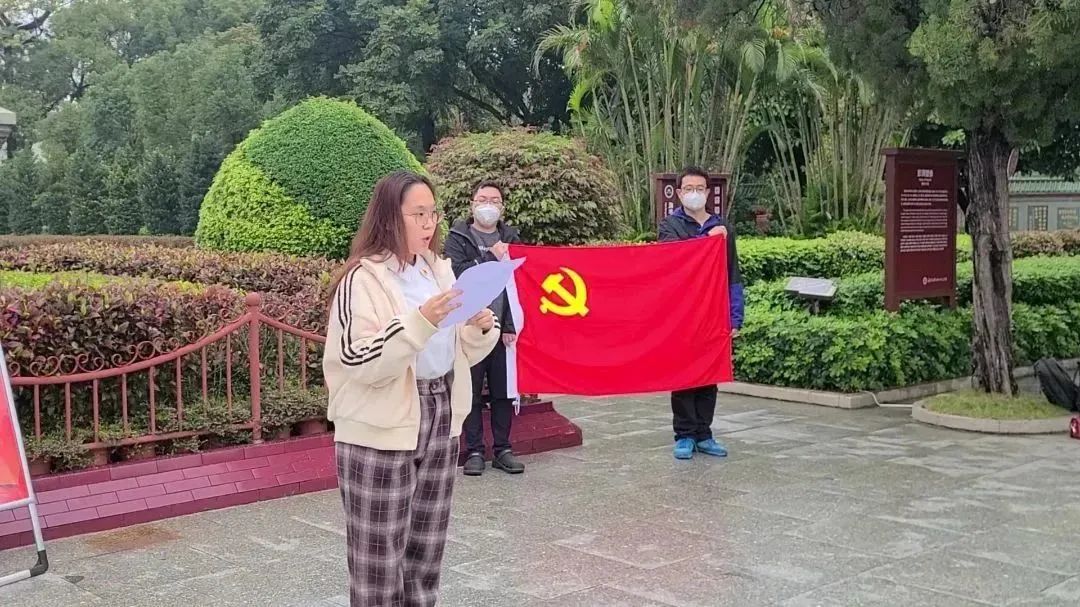 随后,全体培训班学员在彭湃同志铜像前,面向党旗庄严举行新党员入党宣誓暨老党员重温入党誓词仪式。学院党委廖喜扬副书记讲话,他首先代表太阳成集团tyc9728党委向新入党的同志表示祝贺。他表示,彭湃同志心系百姓疾苦、敢为人先的革命事迹,见证着革命先烈抛头颅、洒热血的光辉历程的红宫红场旧址,正无声激励着我们沿着先烈开创的道路奋勇开拓前进。他勉励党员同志们要永葆初心,勇担使命,终身践行入党誓词,时刻严格要求自己,务实进取追求卓越,发挥好先锋模范作用,坚定理想信念,通过实际行动践行全心全意为人民服务的宗旨。紧接着,在廖喜扬副书记的带领下,全体党员同志庄严宣誓,面对鲜红的党旗,同志们斗志昂扬、神情坚毅,以饱满的精神状态和有力的声音表明自己为党和国家的事业奋斗终身的坚定决心,郑重表达对党最炽烈的热爱、最坚定的信念与忠诚。宣誓完毕,本科生第二党支部黎梦真同志代表新党员发言,她表示,作为一名党员,应该不断加强党性修养,以更严的标准要求自己,把激昂的青春融入伟大的中国梦,为祖国的发展贡献自己的光和热。本科生第一党支部潘皓同志代表老党员发言,他表示,作为党员作为新时代青年,我们要主动学习革命先烈的精神,不断提高政治理论水平,努力学习,开拓创新,发挥先锋模范作用,为海洋强国事业贡献自己的青春力量。