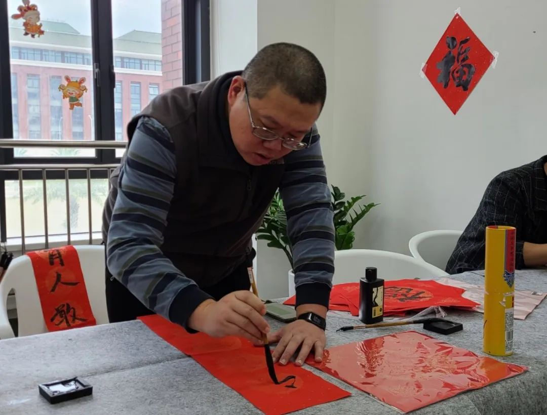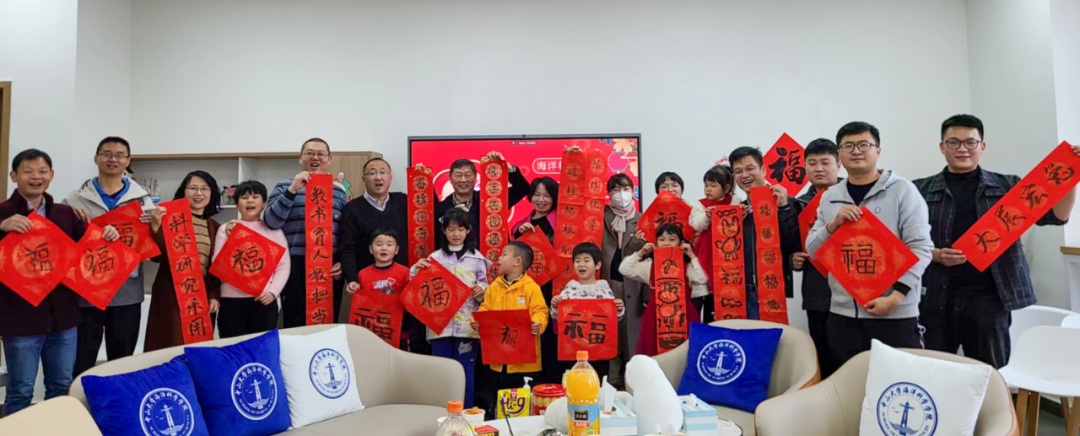 喜庆写春联,墨香暖人心。师生们写着各有特色的福字和“海味”十足的对联,把美好的祝福挥洒在纸上,把衷心的祈愿融入在墨中。