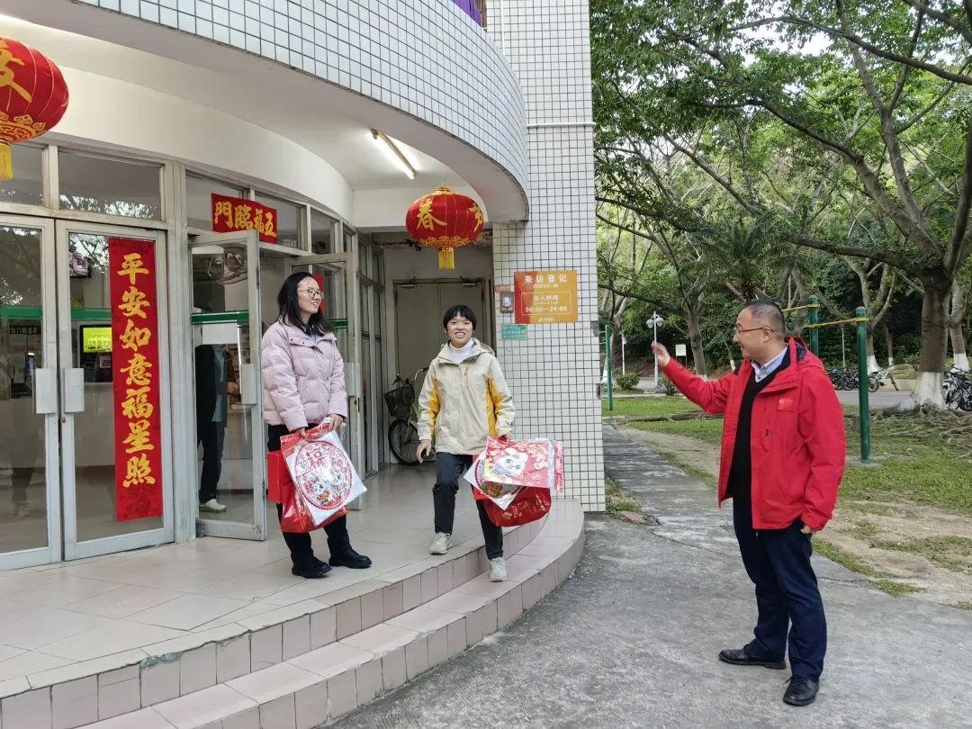 下午,李春荣书记、廖喜扬副书记到学生宿舍走访慰问,了解留校学生假期生活和学习情况,送上新春祝福和节日礼物。