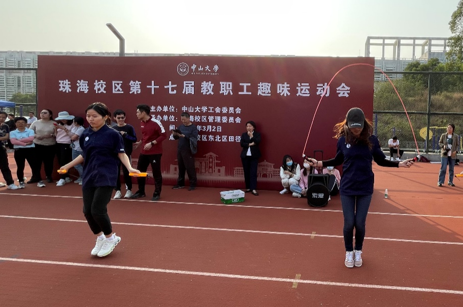 2023年3月2日下午,由中山大学工会委员会主办、珠海校区管理委员会承办的珠海校区第十七届教职工趣味运动会在东北区田径场举行,比赛项目包括“无轨电车”、“同心击鼓”、“五人六足”、“珠行万里”4个团体项目和“一分钟跳绳”个人挑战赛,学院工会积极动员并组织十余名教职工参加了本次趣味运动会。