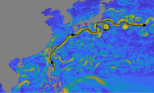 北太平洋环流的主要结构为一个顺时针环流,在福岛附近起主导作用的是黑潮(著名洋流,因水色深蓝似黑色而得名),黑潮在离开日本后,主要向东流动,所以核污染水的主要扩散方向是向东。
