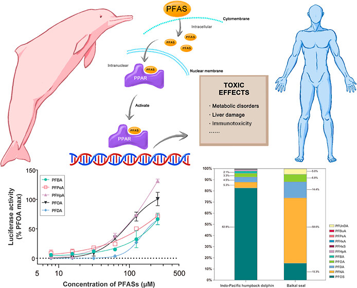 全氟和多氟烷基化合物(Per- and polyfluoroalkyl substances, PFASs)是指含有至少一个全氟化甲基或亚甲基碳原子的一类人工合成化学品。PFASs的高碳-氟键能使其具有极高的热稳定性和化学稳定性,被广泛应用于防污/防水织物、不粘厨具、包装材料和防火泡沫等生产生活用品中。由于具有极强的环境持久性和人体健康风险,PFASs作为有毒“永久化学物质”正引起全社会的广泛关注。然而,目前有关PFASs对海洋哺乳动物的健康风险认知仍非常有限。
