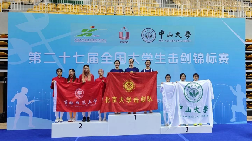 近日,第27届全国大学生击剑锦标赛在中山大学深圳校区举办。我院2021级本科生韦杨琦馨、2023级本科生苏昶玮作为我校参赛队员之一参加比赛,经过激烈角逐,韦杨琦馨获得甲组女子佩剑个人项目亚军、甲组女子花剑团体项目季军,苏昶玮获得甲组男子佩剑个人项目亚军。