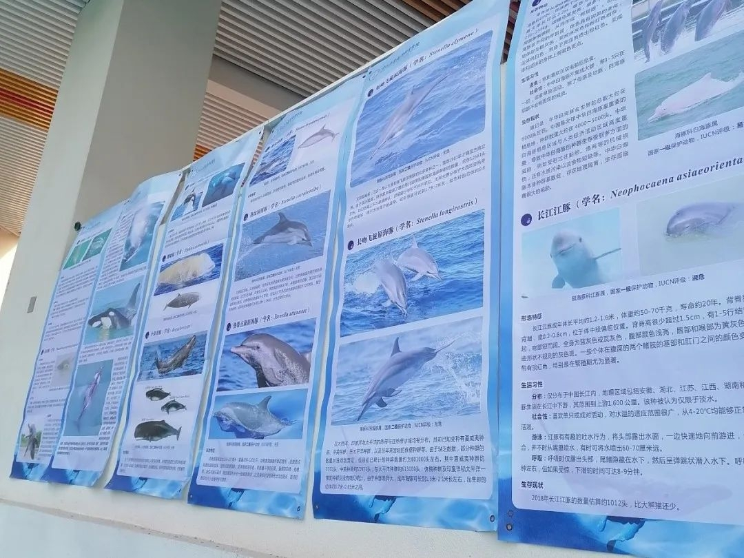 海精灵协会精心布置的鲸豚科普展览,让同学们认识到海洋中各类鲸豚动物,提高海洋保护意识。通过观看展板图文和听取讲解介绍,同学们了解到濒危鲸豚的形态特征、生活习性和生存现状。