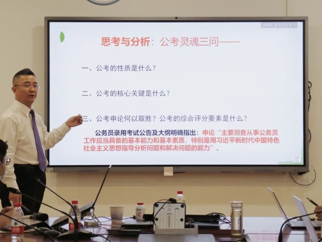 在此基础上,谭文浩老师将学习申论概括为掌握技术、建立联系、形成概念三个方向。从考生角色、审题节奏、提高阅读力、题型分析等多个方面为同学们讲解如何学习申论写作。
