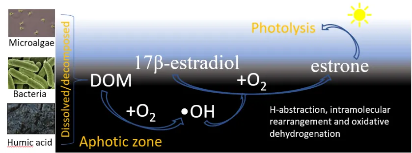 为探究污染物进入海洋生态系统中的环境归趋及其主控过程。杨丽华结合环境模拟、质谱解析和/或理论计算,解析了多种酚类具化合物特异性的主控环境过程,阐明了各生物和非生物过程间的互作机制(Environ. Sci. Technol., 2016, 50(8): 4324-4334);解析了磺胺类抗生素在过氧化物酶驱动下的脱磺基和羟基化过程(Chemosphere, 2018, 624: 673-682);探究了海洋溢油光降解的动力学模型及其影响因素(Mar. Pollut. Bull., 2023, 197: 115729)。此外,为揭示海洋非透光水体中污染物环境归趋,杨丽华揭示了溶解有机质在暗反应下由自由基驱动的污染物减毒转化机制,包括羟基介导对羟基苯甲酸乙酯转化为具持久性的对羟基苯甲酸甲酯(Water Res., 2021, 204: 117623),羟基和单线态氧共同介导雌二醇转化为可光降解的雌酮(Water Res., 2023, 230: 119570)。该研究近年来获国家自然科学基金面上项目资助(No. 21876211),相关成果为基于自然解决方案的新污染物治理和污染控制提供了方法策略。
