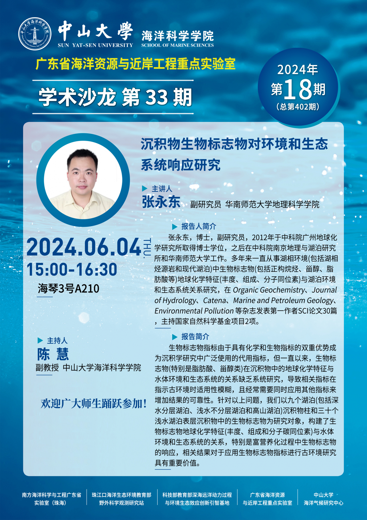 海洋科学学术讲座预告第402期:沉积物生物标志物对环境和生态系统响应研究