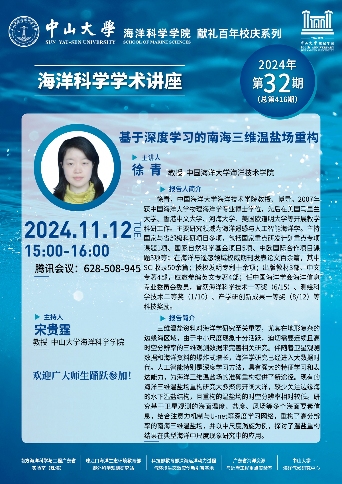 海洋科学学术讲座预告第416期:基于深度学习的南海三维温盐场重构