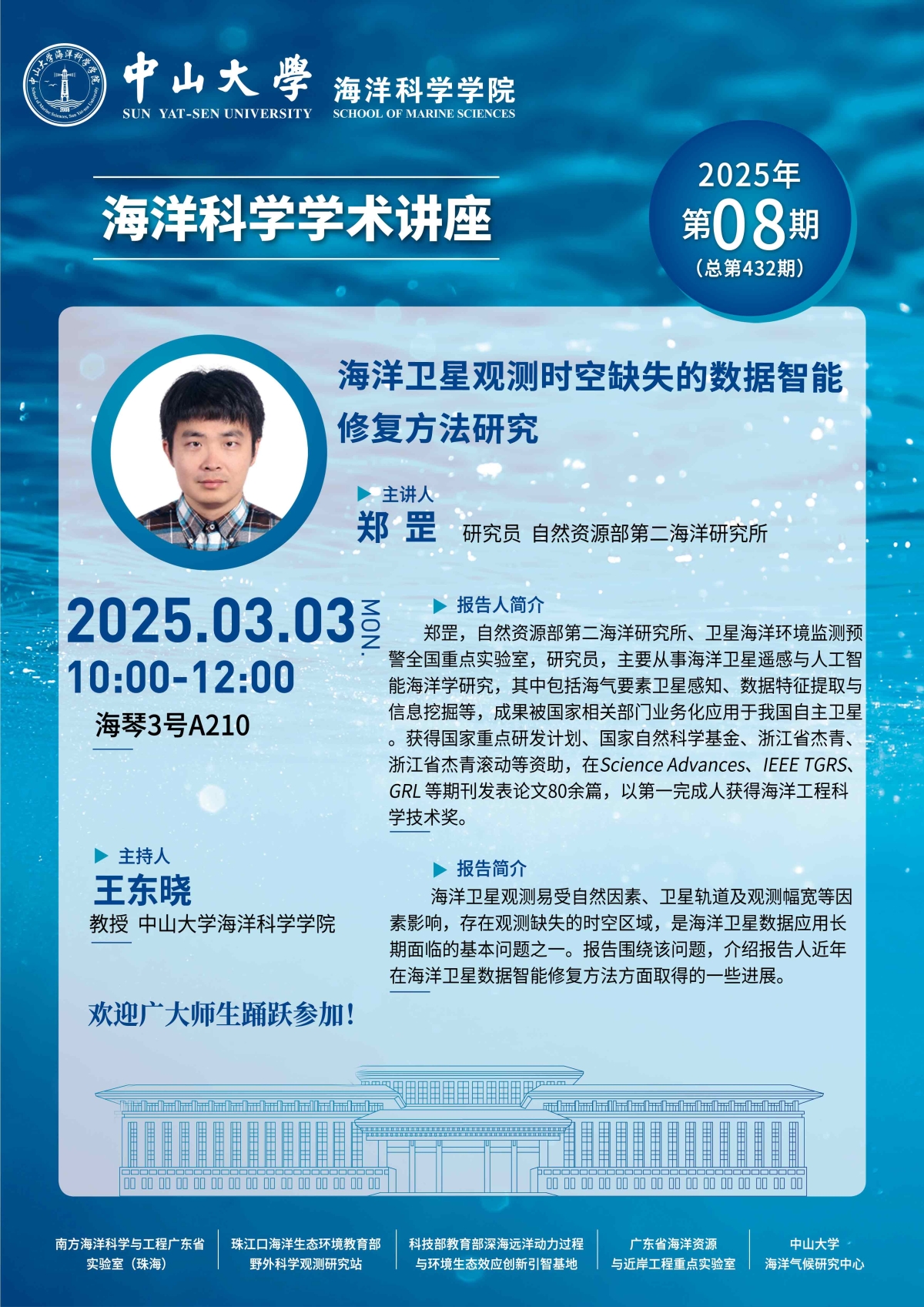 海洋科学学术讲座预告第432期:海洋卫星观测时空缺失的数据智能修复方法研究
