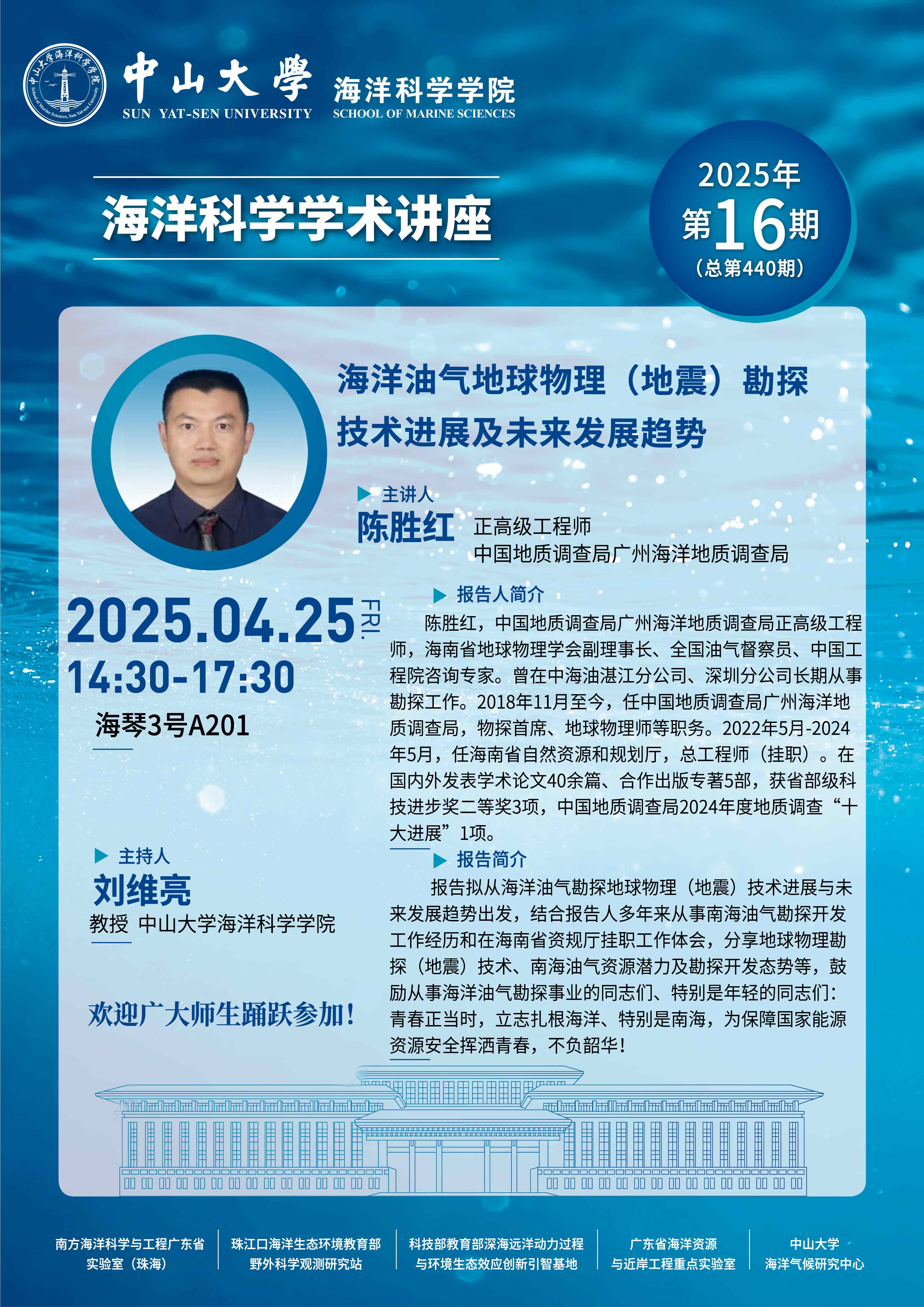 海洋科学学术讲座预告第440期:海洋油气地球物理(地震)勘探技术进展及未来发展趋势