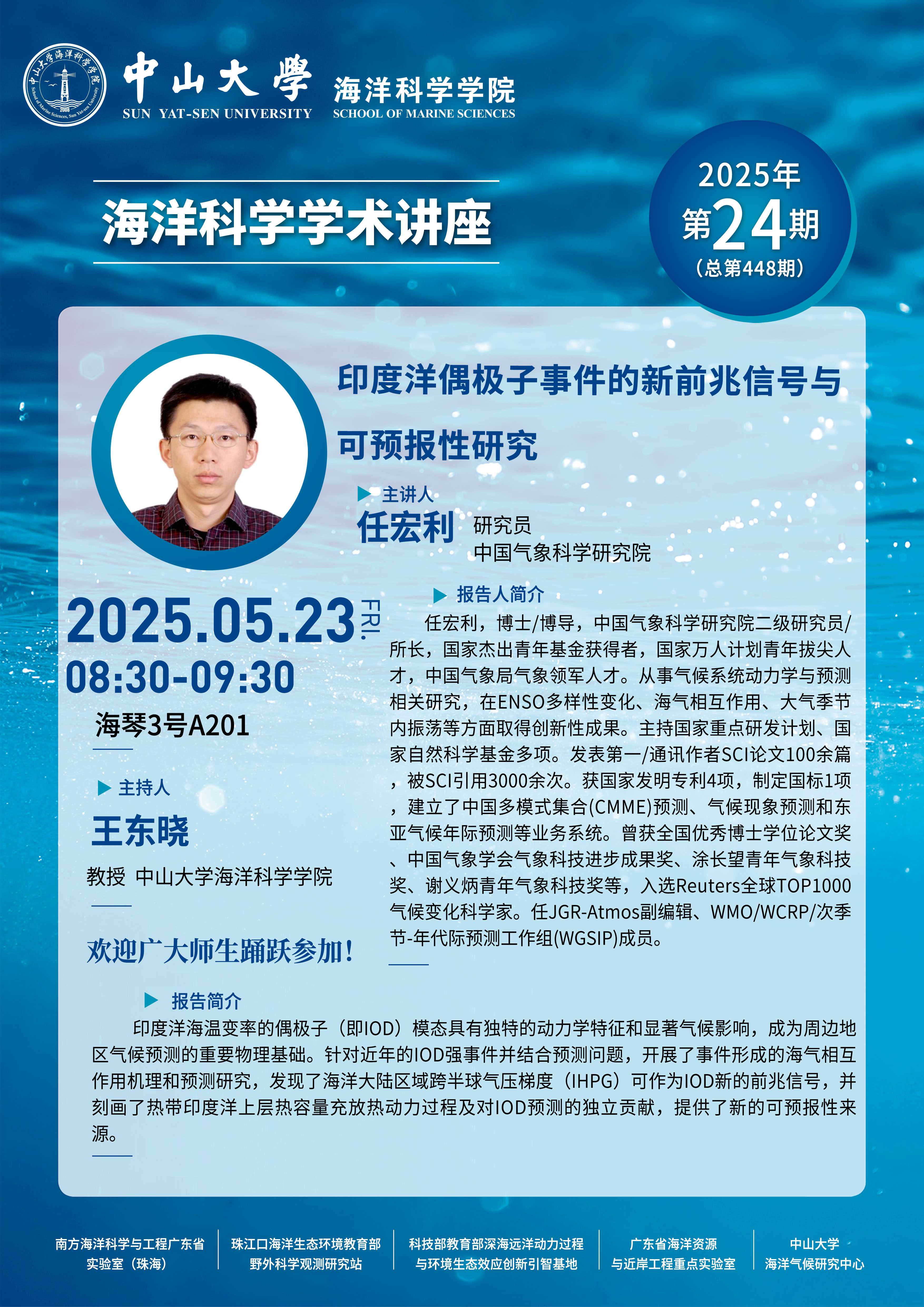 海洋科学学术讲座预告第448期:印度洋偶极子事件的新前兆信号与可预报性研究